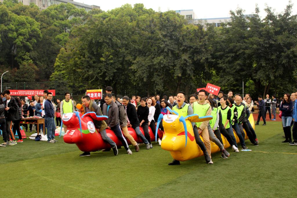本次趣味运动会是校工会“共同的家园 共同的梦想 共建工商大”主题系列活动之一,设置了7个集体项目,分别是“龟兔赛跑”、“旱地龙舟”、“百发百中”、“鸿运彩球”、“超级玛丽”、“百步穿杨”和“贴字接力”。随着裁判长一声哨响,比赛正式开始。参赛的教职工们在工作人员的组织下,积极而有序地参与到各项比赛中。“龟兔赛跑”的追赶超越、“旱地龙舟”的团队精神、“百发百中”的眼手配合、“鸿运彩球”的集体协作、“超级玛丽”的技术比拼、“百步穿杨”的沉着冷静和“贴字接力”的争分夺秒,无不展现出教职工们团结友爱、积极向上的精神风貌,教职工们将团结之美、力量之美、和谐之美充分融入到“心往一处想、劲往一处使”的拼搏中,卯足劲头奋勇争先。最扣人心弦的要数“百步穿杨”,这项比赛是对选手技术和运气的双重考验,每每有选手得分,赛场上都会响起热烈的喝彩声;最热闹的要数“帖字接力”,赛场上选手们精神抖擞你追我赶,加油声、呐喊声不绝于耳;最有趣的要数“百发百中,不仅需要精准的判断力,还需要扔飞盘的选手和捡飞盘的队友密切配合,因此在紧张激烈的比赛中,常常会出现一些有趣搞笑的情景画面,让现场不时迸发出阵阵和谐友好的欢笑声。