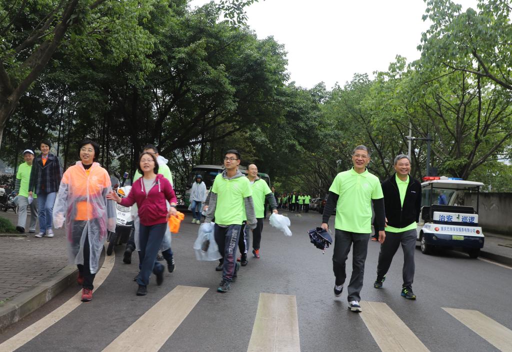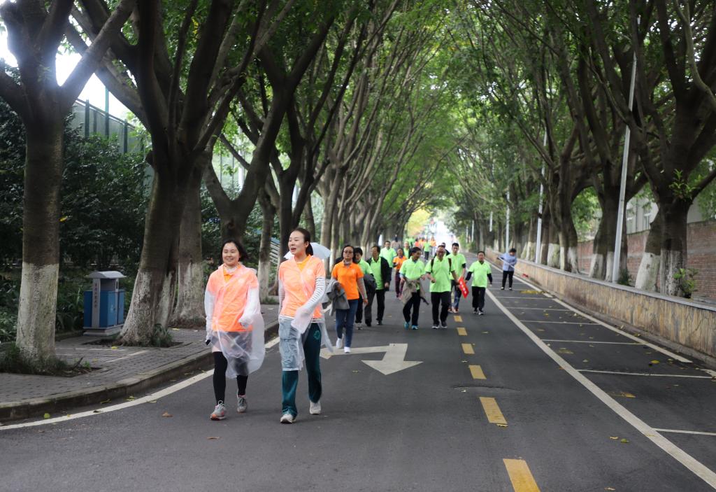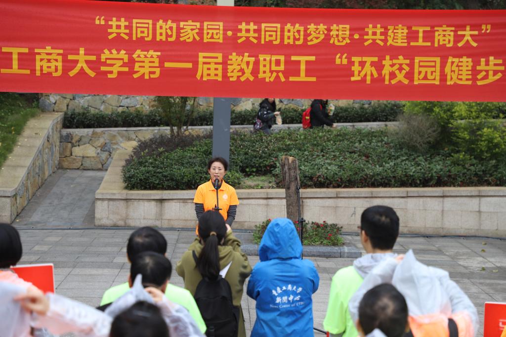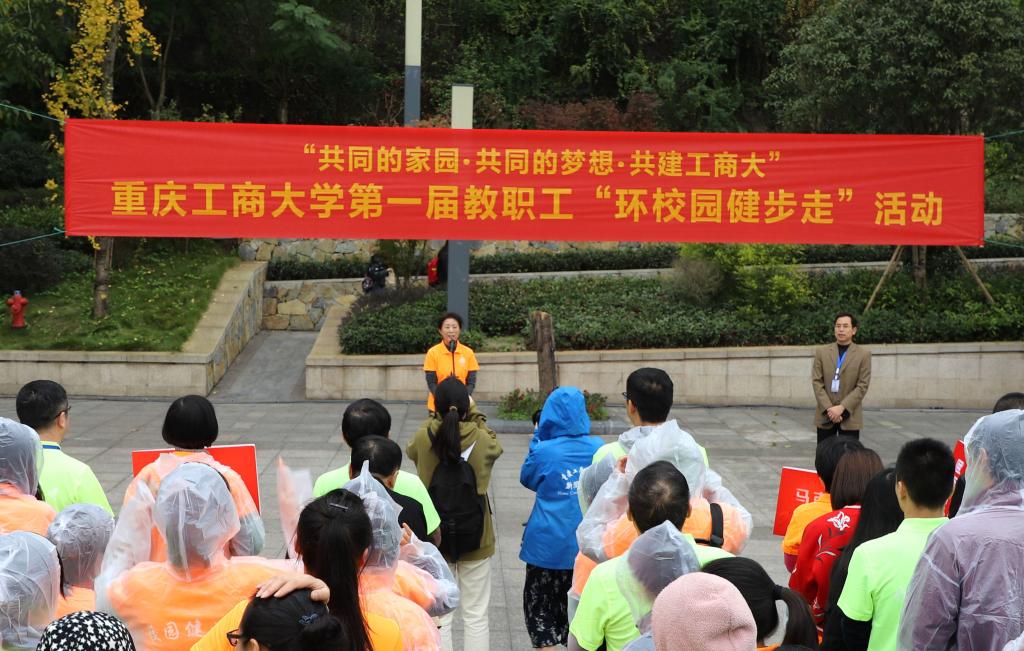 为推动全民健身运动,增强教职工身体素质,丰富教职工校园文化生活,11月16日下午,由校工会主办、体育学院工会承办的“共同的家园•共同的梦想•共建工商大”系列活动之第一届教职工“环校园健步走”活动在南岸校区校前广场举行。校领导李春茹、孟东方、陈运超、周航、李国军、柏群和来自全校22个部门工会的400余名教职工参加了本届环校园健步走活动。