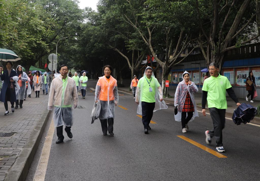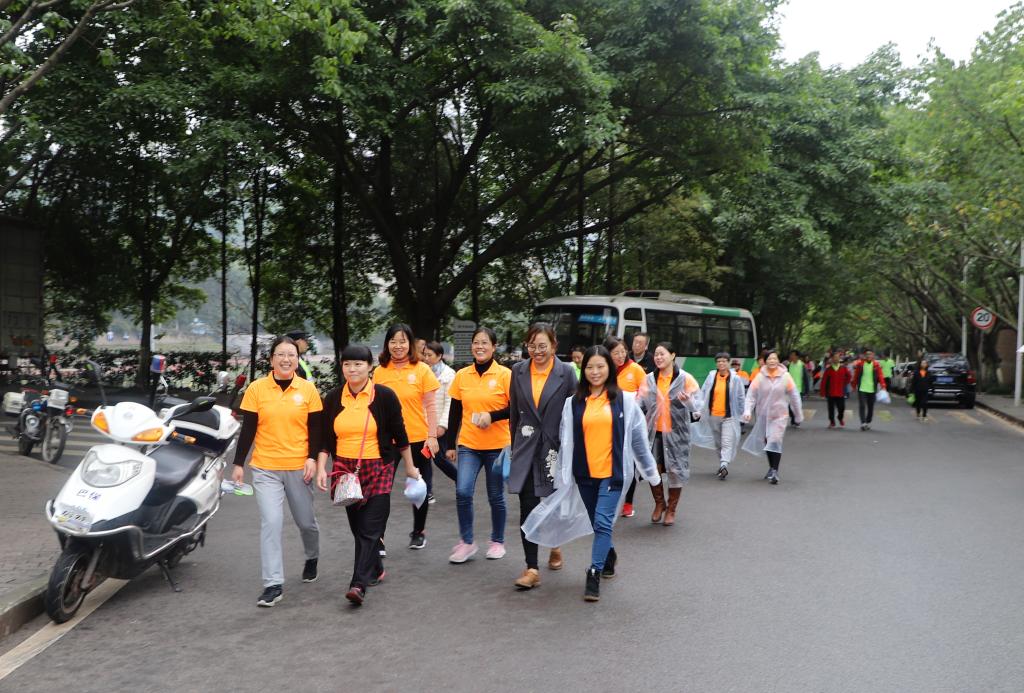下午1:50分,举行开幕式,开幕式由校工会常务副主席曾林主持。首先,活动裁判长丘广星老师宣布活动规则及注意事项。接着,校党委书记李春茹教授宣布活动正式开始。此次健步走活动行程约3公里,从校前广场出发,途径幼儿园、保卫处、启智楼、翠湖、慧智楼、研究生公寓、学海路等地,最后回到出发地点,完成一次环校园健步走活动。