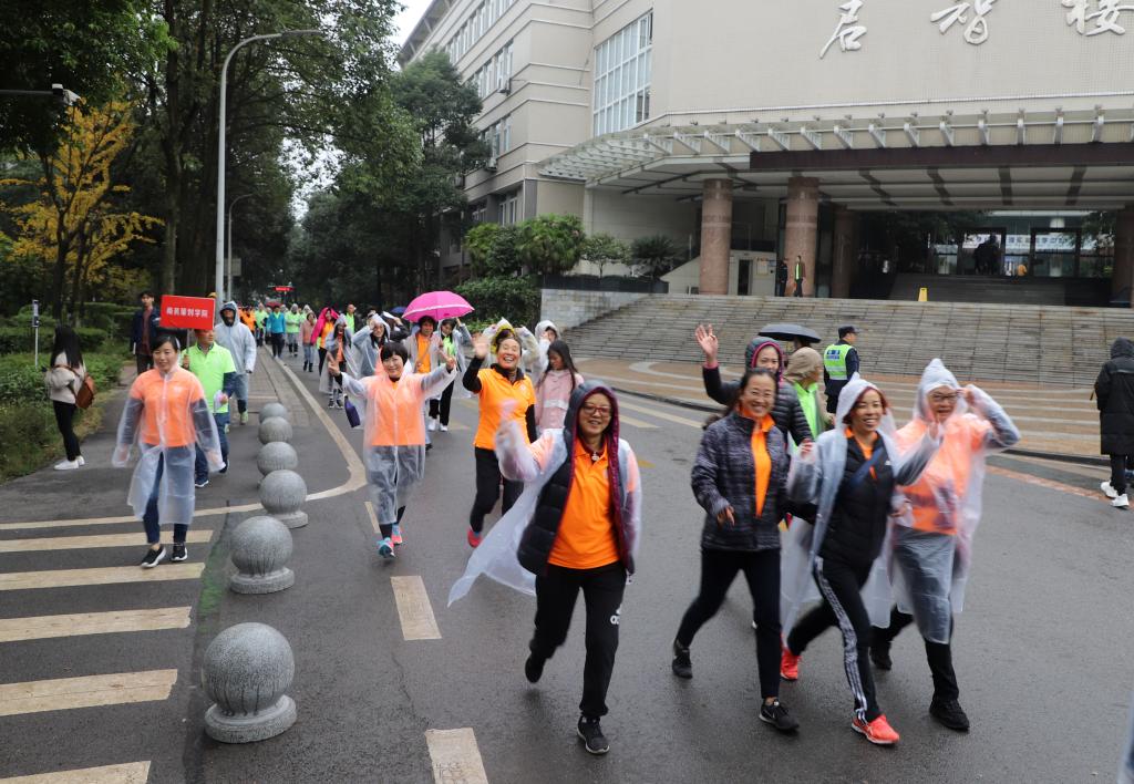 比赛当天,虽然天下着蒙蒙细雨,气温略有些湿冷,但伴随着开幕式广场上热烈动感的歌曲,参加活动的教职工们都兴致勃勃,热度不减,纷纷在横幅背景下前合影留念,激动地等待着活动开始,现场洋溢着欢快和谐的氛围。