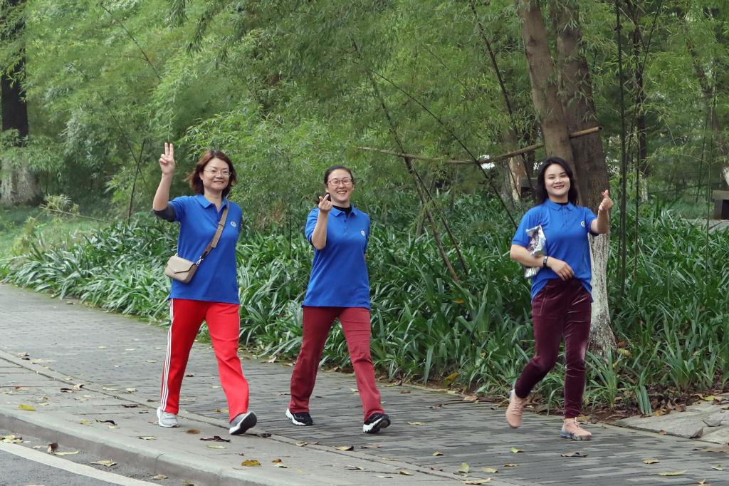 待裁判员一声令下,选手们精神饱满地从校前广场出发。天气晴好,老师们热情高涨,享受着欢乐健步走带来的快乐。活动结束后,选手们一起合影留念。