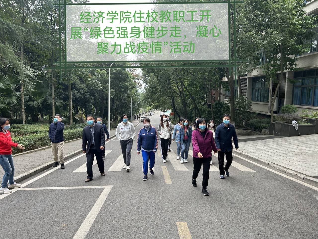 经济学院工会开展住校教职工“绿色强身健步走,凝心聚力战疫情”健步走活动,组织坚守在工作岗位的17位教师参加。学院党委书记李自维代表学院党政诚挚感谢老师们义无反顾的坚守,疫情就是命令,防控就是责任,希望老师们以积极向上的精神风貌投入到比赛中、疫情中、工作中、生活中。