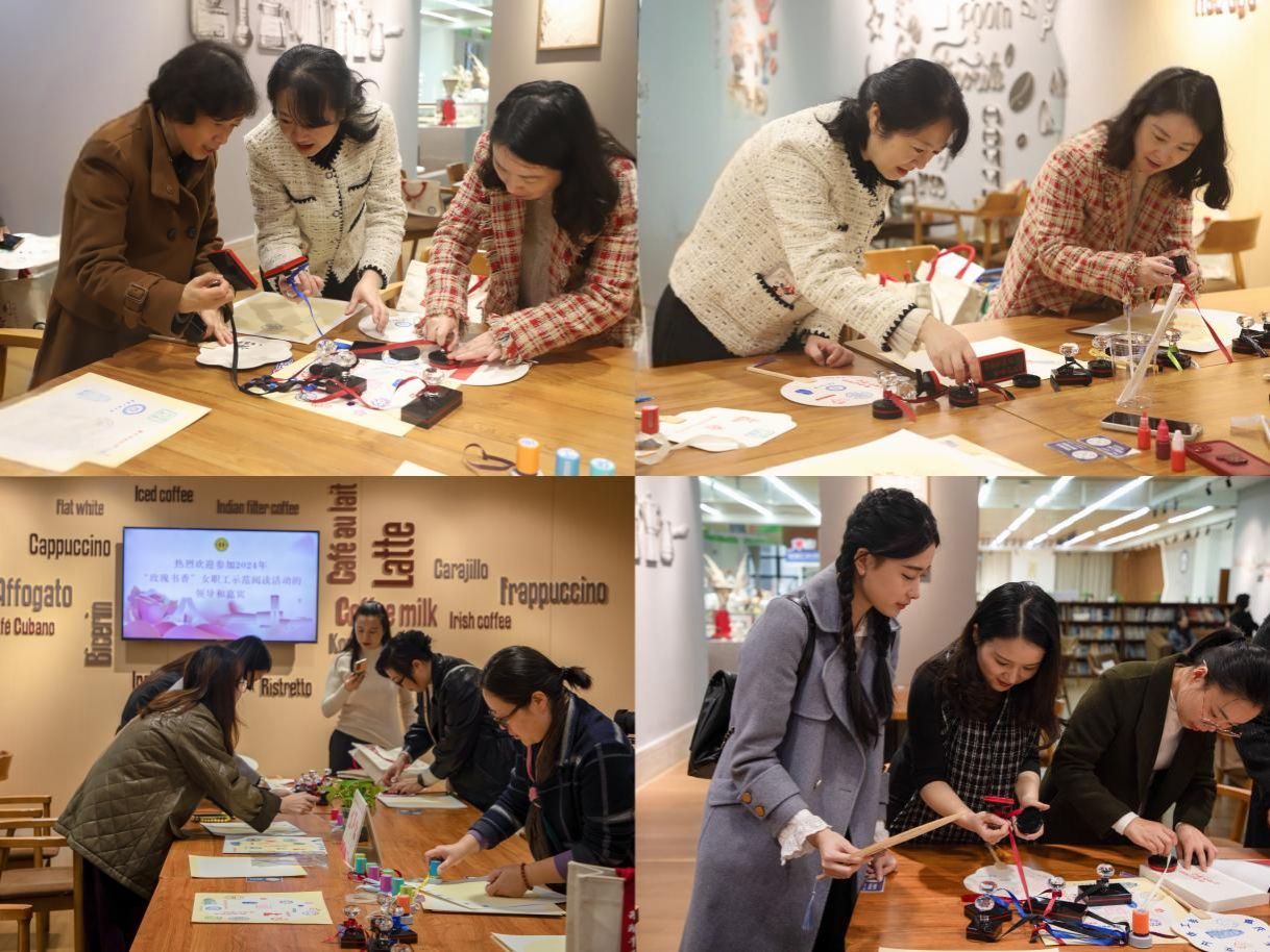活动在浓厚的文化氛围中拉开序幕。女职工们签到后,首先前往翠湖书吧参与拓印分享环节。她们亲手将印有“红岩巾帼志,书香绽芳华”“女职工阅读活动”等活动主题字样的印章拓印在纸扇或卡纸上,体验传统文化的独特魅力,加深对活动主旨精神的理解。女职工们相互交流拓印心得,分享对“红岩巾帼志”和“书香绽芳华”的独到见解,现场洋溢着轻松快乐、积极向上的精神风貌。