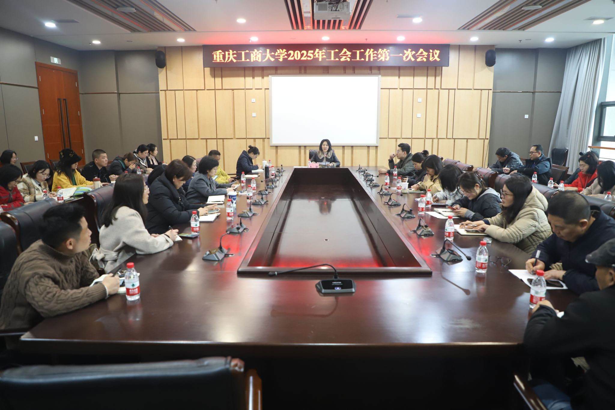 为进一步明确新学期工会工作方向,凝聚教职工力量,为学校发展提供坚实保障,3月3日下午,校工会在图书馆第五会议室组织召开了2025年工会工作第一次会议,研究讨论和安排布置本学期工会工作。全校各二级工会主席、机关分工会主席及校工会工作人员参加了会议,校工会常务副主席王静主持会议。