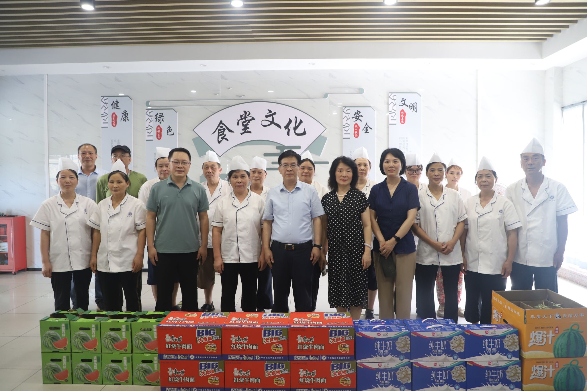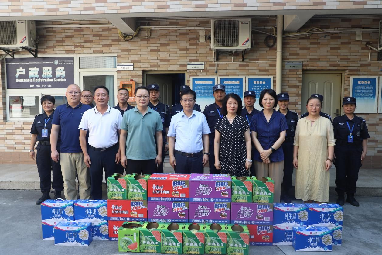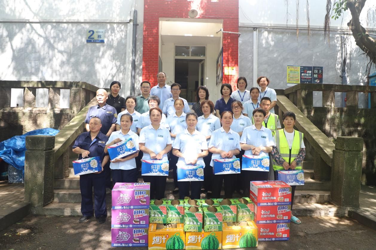 慰问过程中,校领导为坚守岗位的教职工送上慰问品,并与大家合影留念。一句句关切的叮嘱,一份份暖心的问候,犹如夏日清风拂去大家的疲惫与燥热。此次慰问活动,不仅为炎炎夏日里坚守岗位的教职工带来了清凉,更彰显了学校对教职工的深切关怀,为学校暑期各项工作的平稳有序开展注入了强大精神动力。