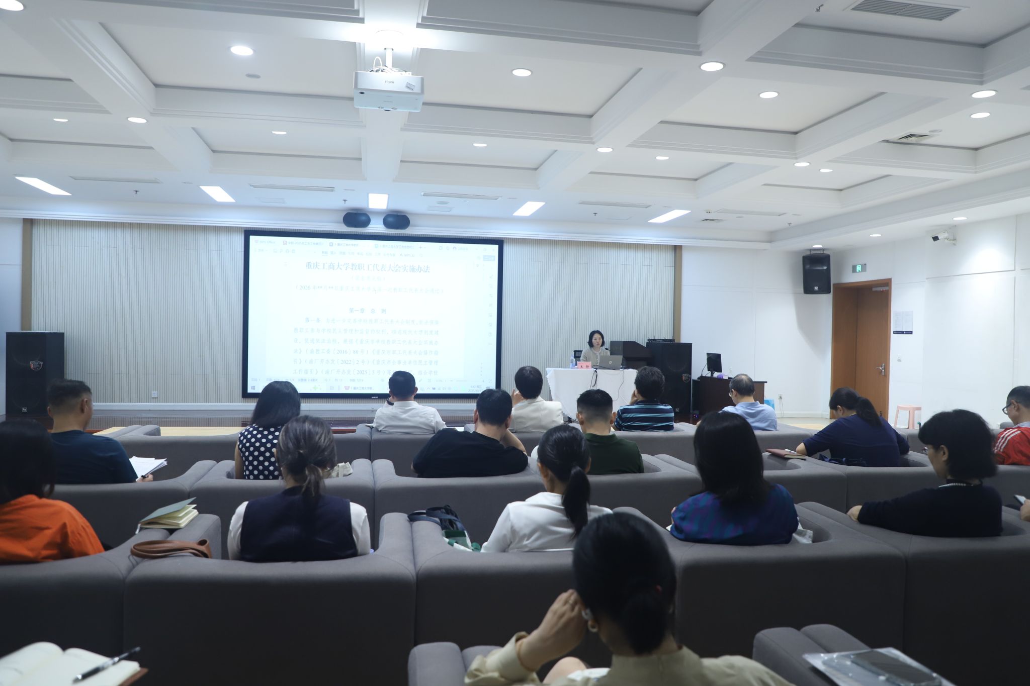 随后,王静对两份文件的核心内容进行了逐章逐条解读。针对职权界定、代表产生程序、会议组织流程、提案办理机制等关键条款,她既对照上级文件精神明确政策依据,又结合学校过往“两代会”实践案例说明调整原因,还借鉴兄弟高校先进经验补充优化思路,帮助参会人员清晰理解制度制订的核心思路与细节考量。