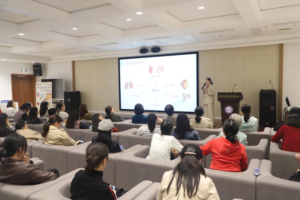 作为校工会重点打造的“关爱职工・守护健康”系列讲座第四场活动,本次聚焦女教职工群体高频关注的“血糖健康”问题,特邀深耕营养健康领域十余年的高级营养专家、国家注册营养师亲临授课。讲座中,专家以《营养与血糖健康》为主题,结合女教职工“久坐办公、饮食不规律、家庭膳食管理压力大”等群体特点,用通俗的语言拆解“血糖波动与日常饮食的关联”“高糖隐形陷阱识别”等核心知识,更针对性给出“三餐粗细搭配公式”“办公室健康零食清单”“控糖食材选购技巧”等实用方案,让抽象的营养理论转化为可落地的生活指南。