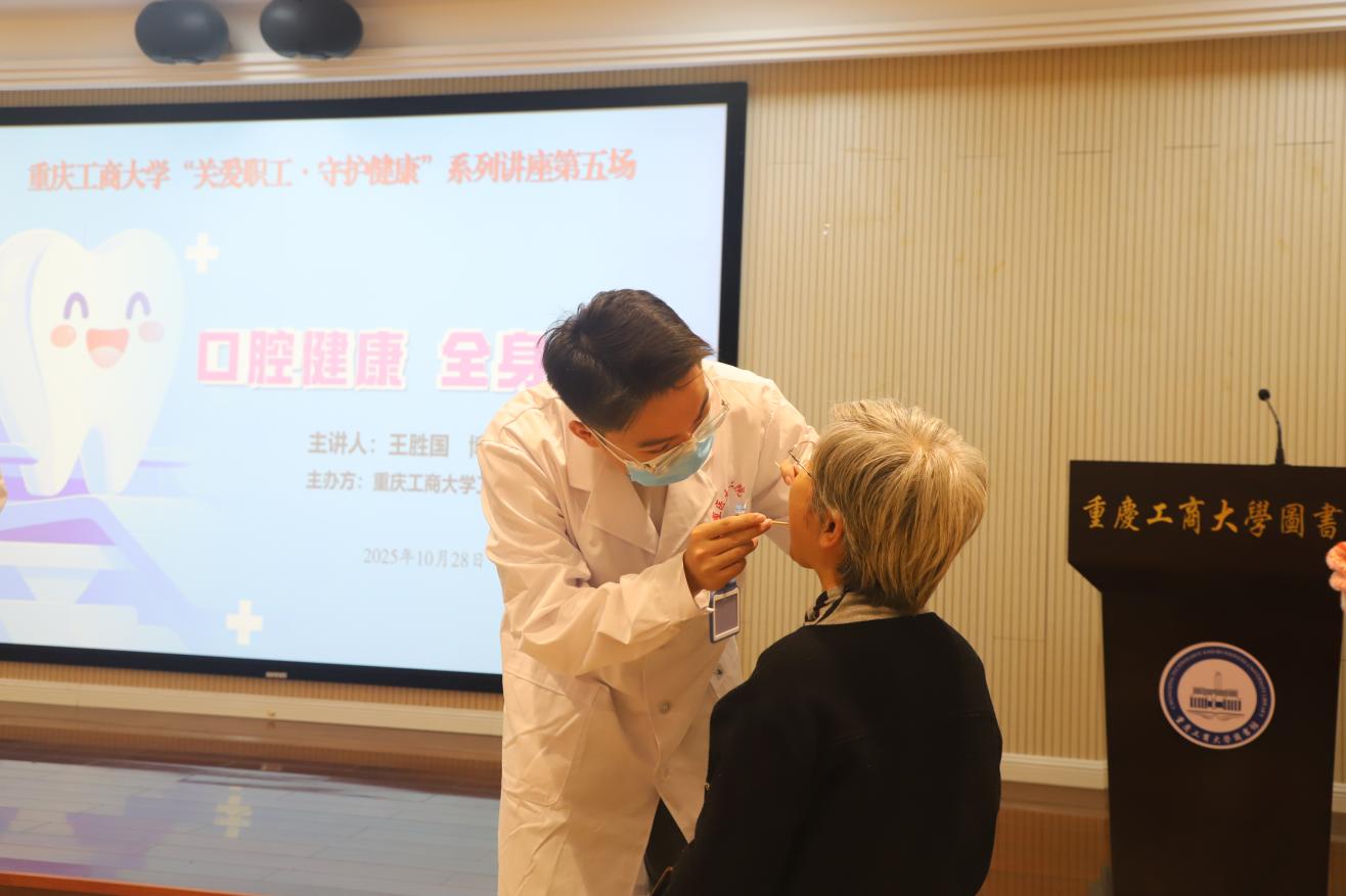 10月28日下午,校工会精心策划的“关爱职工·守护健康”系列讲座第五场如期举行,本次讲座以“口腔健康·全身健康”为核心主题,特别邀请了重庆医科大学附属第二医院口腔科权威专家、主任医师王胜国博士担任主讲嘉宾,并在讲座结束后同步开展了现场义诊活动。活动吸引了50余名师生参与,其专业的内容设置与实用的服务形式获得了师生的广泛赞誉。