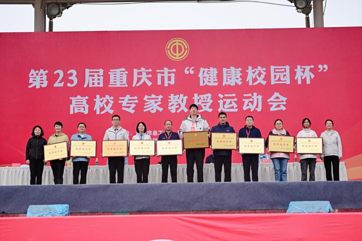 10月31日,由重庆市总工会、重庆市教育委员会联合主办,重庆市教科文卫体工会与重庆文理学院共同承办的第23届重庆市“健康校园杯”高校专家教授运动会,在重庆文理学院田径运动场圆满落幕。本届赛事共吸引全市43所高校及市教委机关工会代表队同场竞技,太阳成tyc7111cc党委书记曾维伦、副校长张波、纪委书记张海燕、副校长任毅带领20名专家教授代表队积极应战。最终凭借科学组织和出色表现,一举斩获“优秀组织奖”,并在两个项目中分别摘得一等奖、三等奖,充分展现了学校对教职工身心健康的深切关怀,以及工商大人努力拼搏、锐意进取、追求卓越的精神风貌。