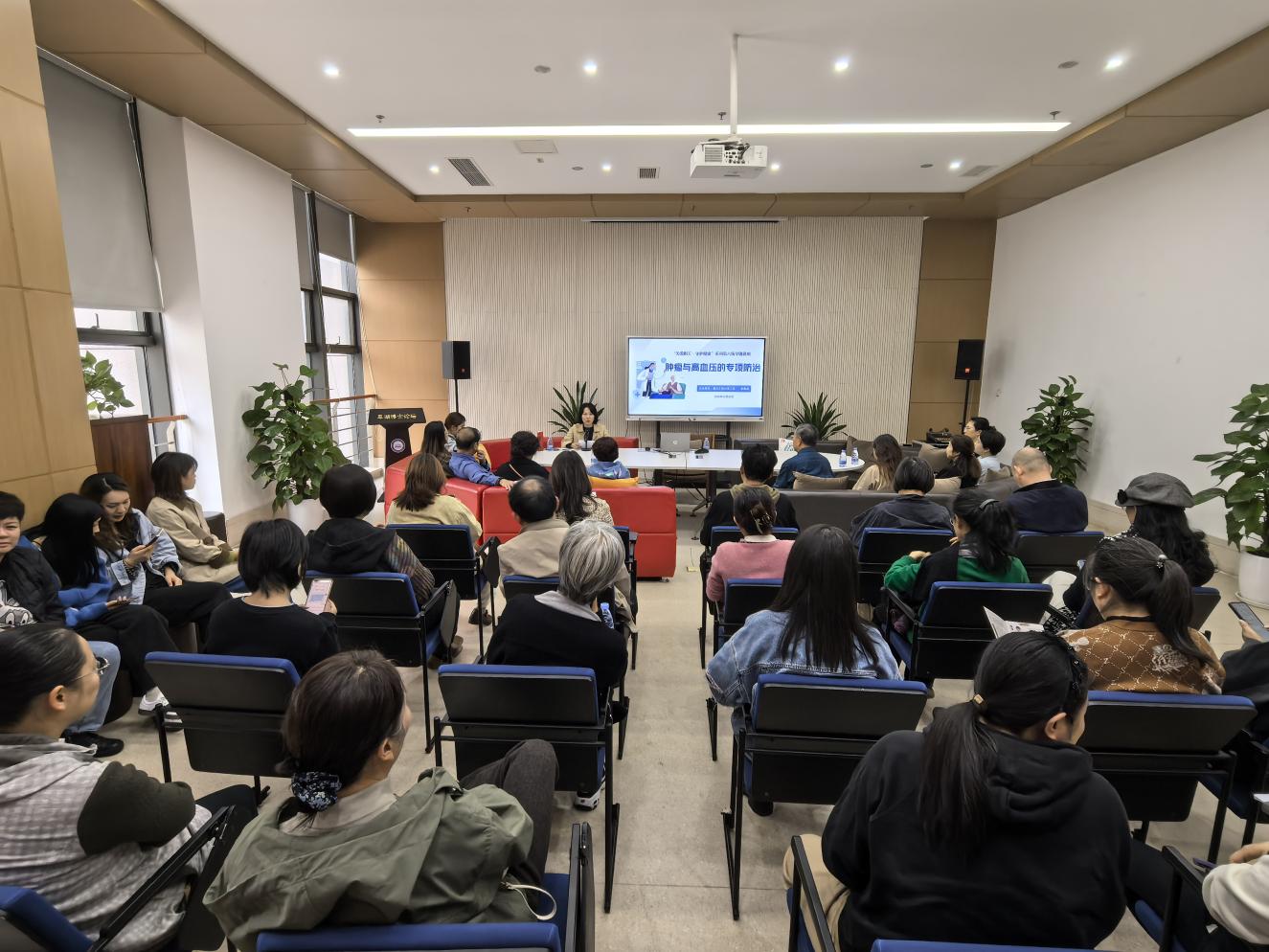 活动特邀重庆医科大学附属第二医院乔玲博士、重庆市人民医院郑永玲副主任医师组成专家团队授课。乔玲博士从中西医结合视角切入,系统阐释肿瘤“治未病”理念,重点分享“早筛早治+体质调理+膳食调理”的三级预防策略;郑永玲副主任医师则从现代医学出发,深入剖析高血压的病理机制与靶器官损害风险,结合临床案例解析不良饮食习惯、肥胖、精神压力等常见诱因,并定制“饮食+运动+药物”三维管理方案。两位专家的讲解兼具理论深度与实操性,现场互动答疑环节氛围热烈。