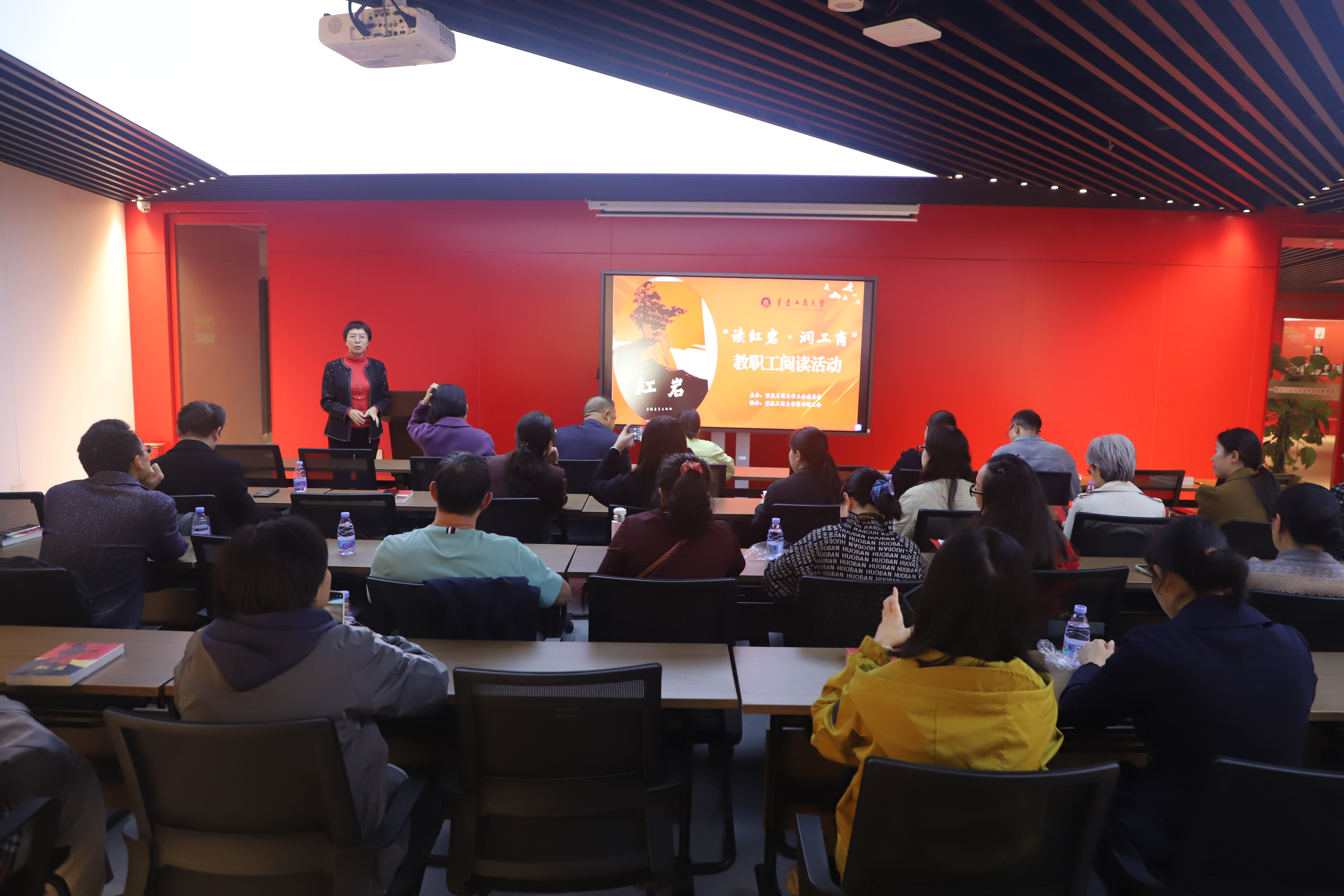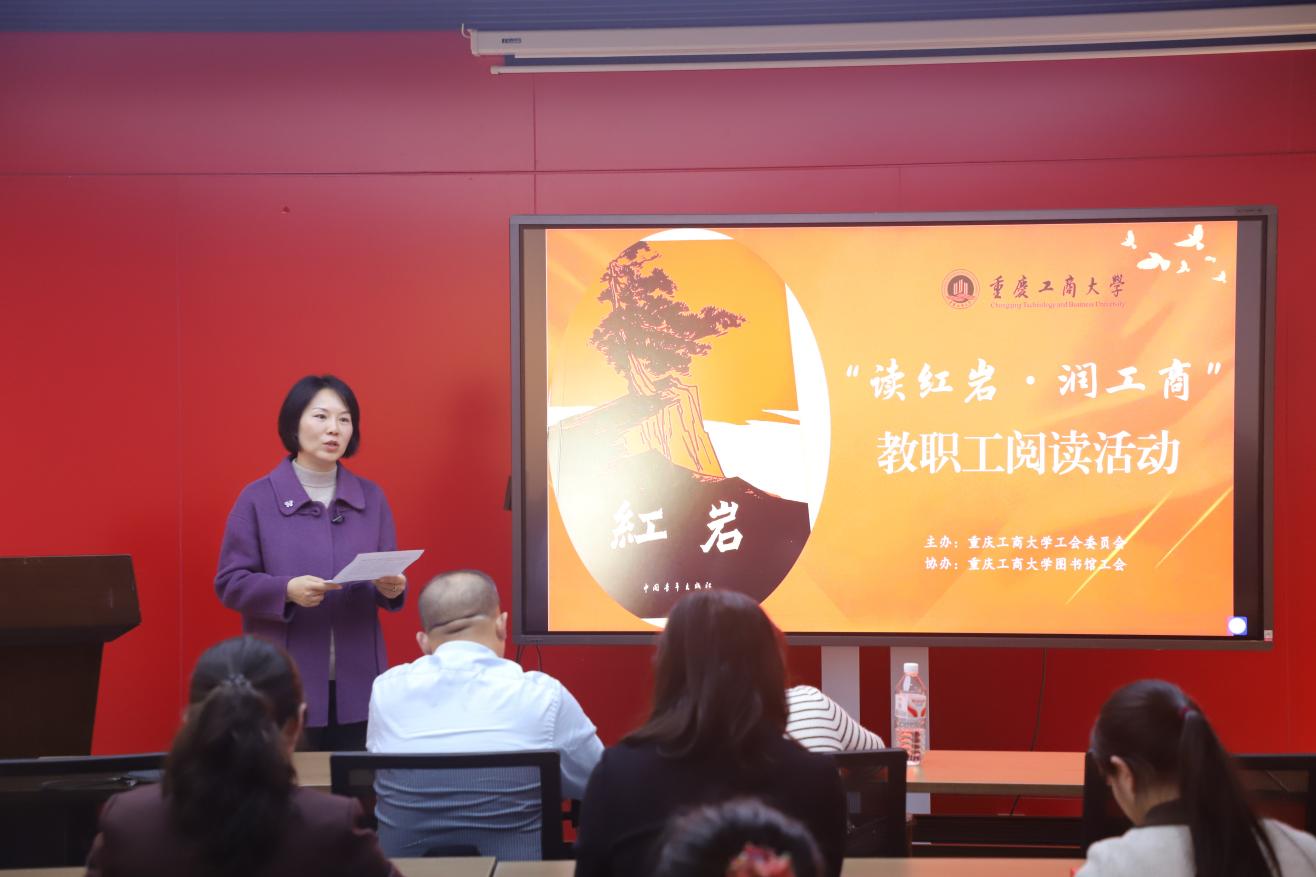 参观结束后,交流分享会在旧址会议室举行,由图书馆党总支书记陈翠岚主持。校工会常务副主席王静首先介绍了学校依托图书馆打造的中华全国总工会职工书屋示范点建设情况。该书屋以“读红岩·润工商”为核心品牌,正在系统推进职工书屋建设工作,包括文化墙的设计与布置、阅读阵地的拓展与优化等,着力构建沉浸式红色阅读生态。随后,校工会向参与教职工逐一赠送经典红色书籍《红岩》,引发深度研读热潮。