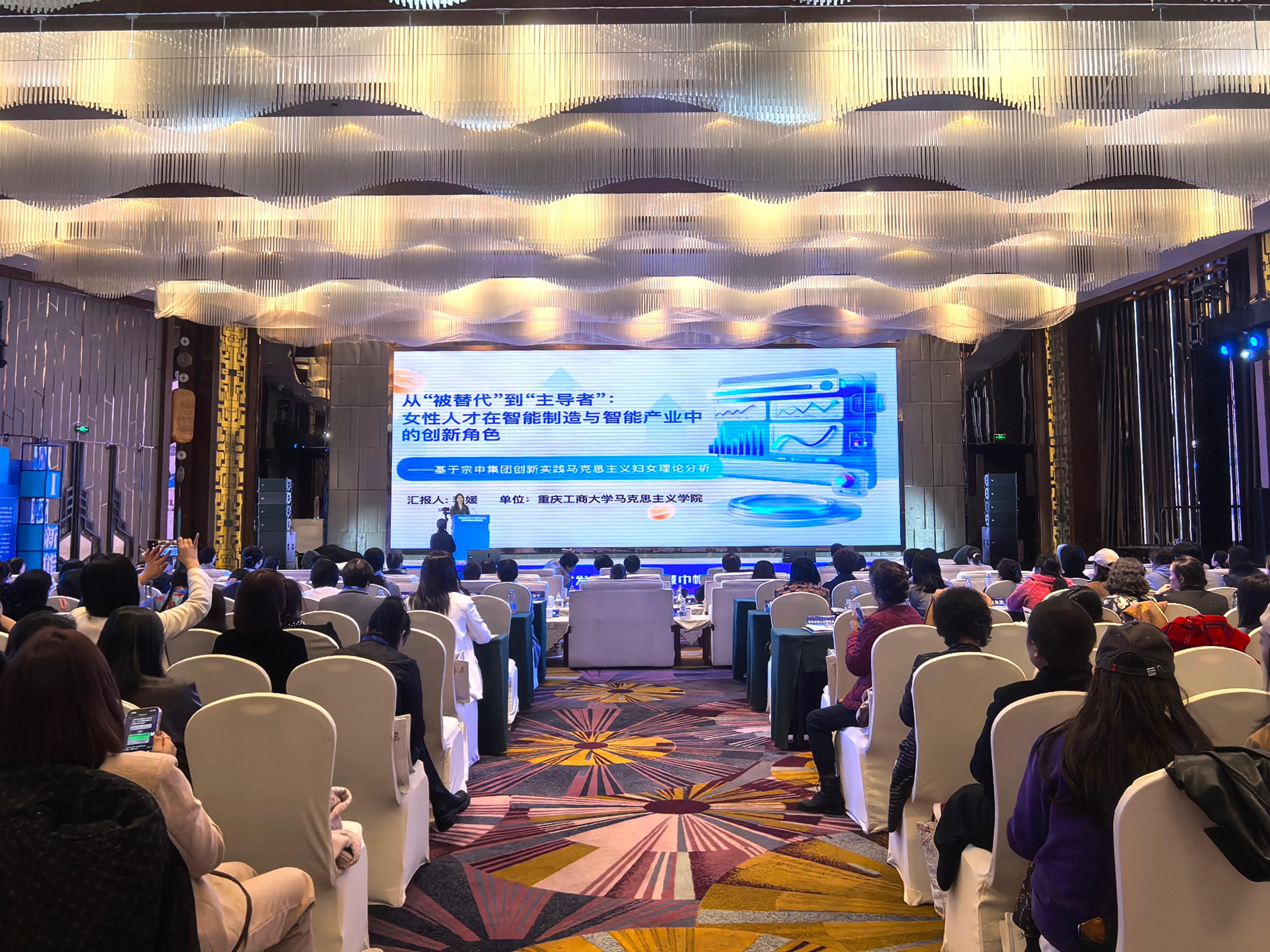 2025年11月15-16日,中国人力资源开发研究会女性人才研究会第六届会员代表大会暨2025全国女性人才发展交流大会在重庆召开,我校7名教师代表参会。校工会选送的12篇高质量论文在此次大会斩获多项荣誉,一等奖获得者李媛登台分享研究成果,充分展现了我校在女性人才研究领域的雄厚实力与广泛影响力。