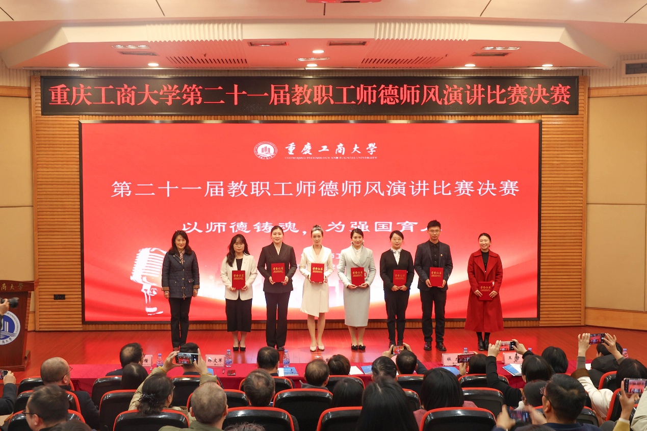 最后,曾维伦作总结讲话。他首先向各位获奖选手表示热烈祝贺,向辛勤付出的组织者和评委们表示衷心感谢。他指出,当前全校上下正深入学习贯彻党的二十届四中全会精神,在这一关键时期,迫切需要一支高素质的教师队伍,为强国育人事业提供支撑。本次演讲比赛既展现了新时代高校教师的理想追求,又诠释了教育家精神的丰富内涵。围绕教师如何践行“以师德铸魂,为强国育人”,他强调,一要心有大爱,以教育家精神引领育人使命,将个人理想自觉融入国家发展与民族复兴的伟大事业,成为学生成长道路上的“大先生”。二要身怀匠心,深耕教学一线,积极推进信息技术与教育教学深度融合,着力培养学生的创新实践能力,成为“经师”与“人师”相统一的复合型教师。三要心怀仁爱之心,尊重学生的个性差异,做到因材施教,成为学生的学业指导者、生活守护者、心灵陪伴者。他殷切希望全校教职工大力弘扬教育家精神,以更加饱满的热情、更加务实的作风、更加高尚的师德,为学校高质量发展和教育强国建设贡献更大力量。