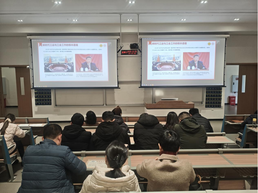 为深入学习贯彻习近平总书记关于工人阶级和工会工作的重要论述及中国工会十八大精神,确保学校第五次“两代会”(教职工代表大会、工会会员代表大会)规范高效召开,12月24日上午,校工会以“主会场+远程视频”形式开展代表专题培训。南岸校区博智楼7200报告厅为主会场,茶园校区宏智楼111教室设分会场开展正式代表培训,共有200余名代表同步参会。培训由校工会常务副主席王静主讲,副主席郑科主持。