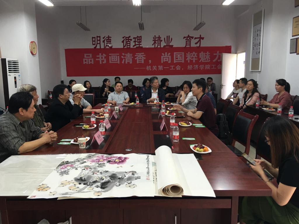 4月27日下午,经济学院工会和机关第一分工会在田家炳404会议室举办了一场名为“品书画清香,尚国粹魅力”的书画交流会,约50余名会员参加了鉴赏会,活动由党政办公室副主任郭楠主持。