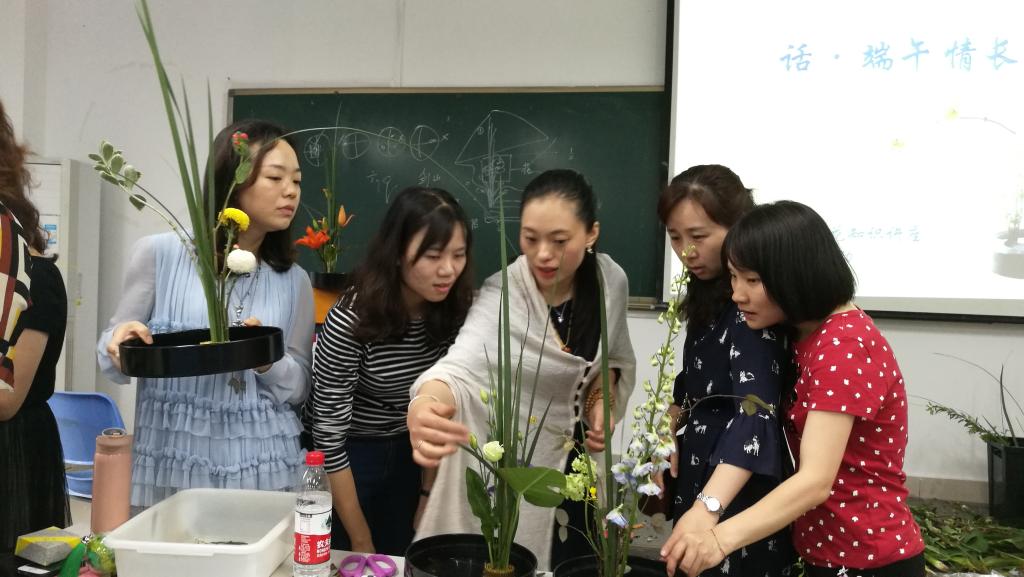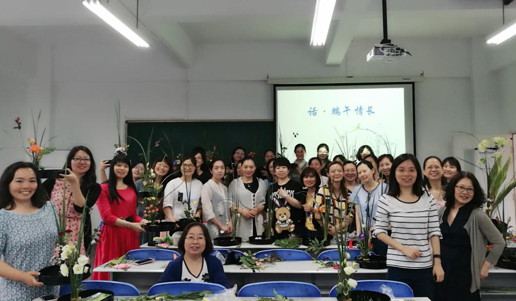 6月15日下午,外语学院工会在田家炳书院406教室举办了插花知识讲座及体验活动,来自外语学院的50余名老师参加了此次活动。时值端午假期前夕,本次活动以“话·端午情长”为主题,老师们在学习插花技艺的同时,深刻感受中国传统文化的魅力。