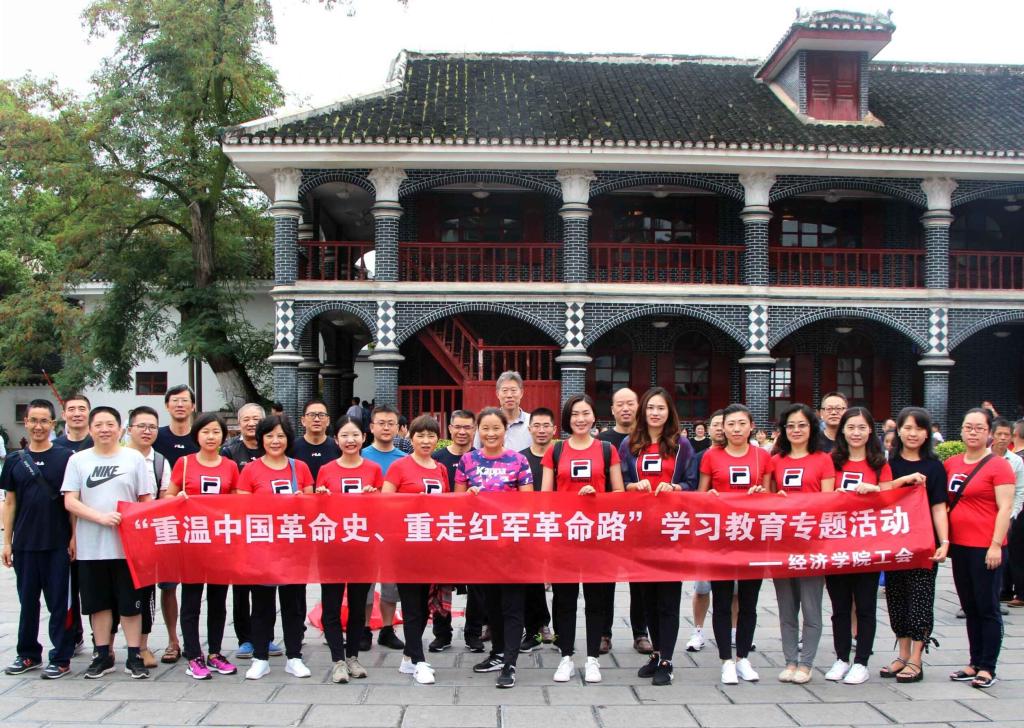 2018年7月6日至7月7日,经济学院组织了“重温中国革命史,重走红军革命路”的工会活动,近30名教职工参加了本次活动。7月6日下午老师们来到娄山关战斗遗址——贵州省遵义市汇川区,了解娄山关战役历史,瞻仰了毛泽东《忆秦娥.娄山关》诗词碑,重走了长征路,缅怀革命先烈的英勇事迹。在王小玲书记的带领下,党员教师们重温了入党誓词,铿锵有力的声音响彻娄山关。