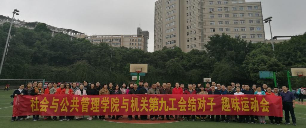 2018年10月26日下午,社会与公共管理学院与机关第九分工会开展了结对子活动,双方在新北区篮球场举行了一场别开生面的趣味运动会。