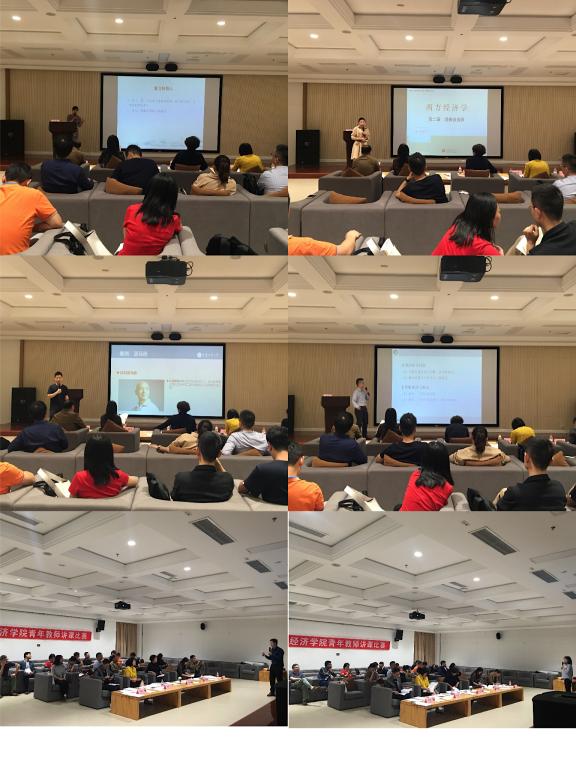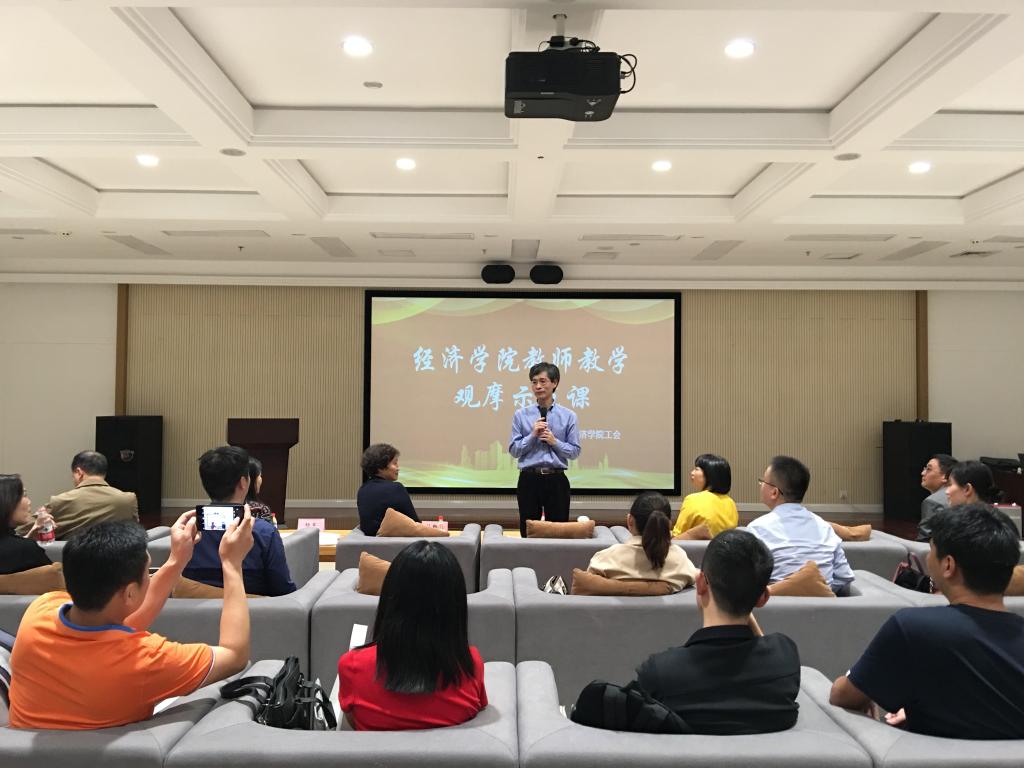 4月12日下午,由经济学院工会和学院本科教学督导组联合组织的“经济学院青年教师讲课比赛”以及教学经验分享会,在学校新图书馆视听阅览室成功举行。学院分党委书记王小玲、教学副院长宋瑛、学院工会主席和工会委员、各系主任、院督导组成员、骨干教师以及近三年新进教师参加了这次活动。学校评估办副主任杜朝辉应邀出席了活动并担任了讲课比赛的评委。本次讲课比赛是学院一年一度开展的重要教研活动,也是学院工会组织青年教师参加学校工会举办的全校青年教师讲课比赛的选拔赛,根据各系推选,共有9名青年教师参加了讲课比赛。