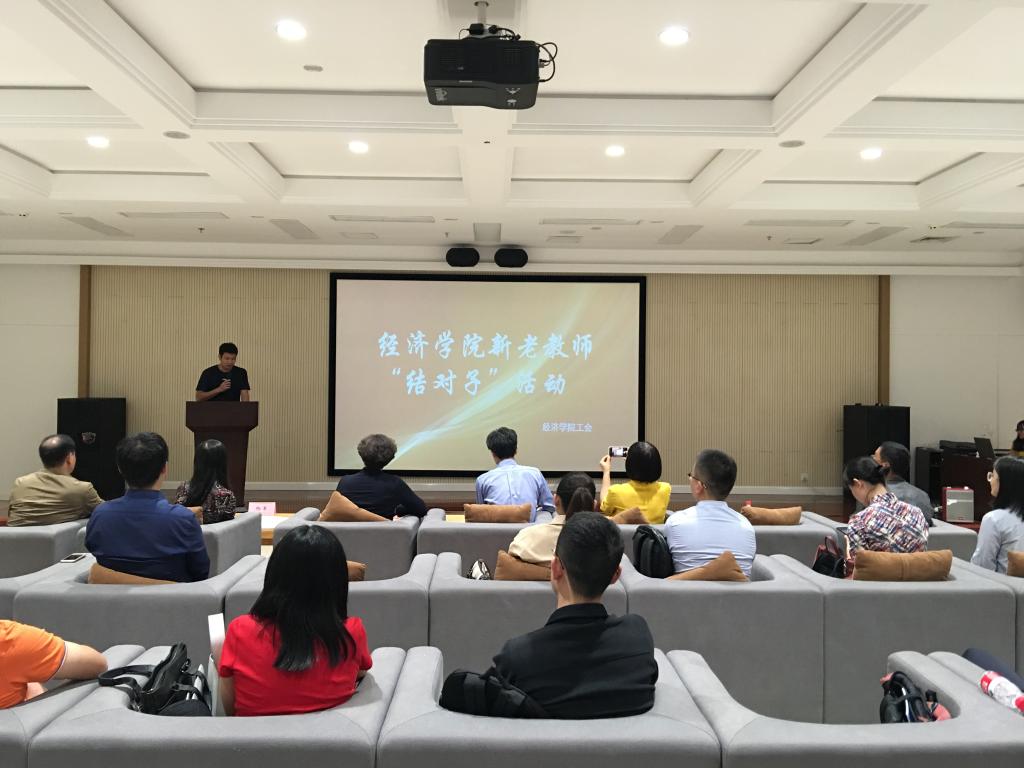 4月12日下午,经济学院工会在学校新图书馆视听阅览室组织举行了新老教师“结对子”活动,学院分党委书记王小玲、学院教学副院长宋瑛、学院工会主席吴孟、学院督导组组长孙建以及各系系主任、近三年新进学院的教师以及部分资深老教师出席了活动仪式。会上,宋瑛副院长首先介绍了我院开展新老教师结对子活动的重要意义以及近两年来所取得的经验,学院督导组组长孙建教授对本次“结对子”活动的实施办法和具体安排做了说明。随后,经济学系许岩老师代表新老师做了发言,他表示,新老师都是没有教学经验的青年老师,学院能够“一对一”安排老教师指导,是新老师的福利和很好的学习机会,希望能够从老教师哪里学到更多的教学经验,努力成长,尽快提高自己的教学水平。