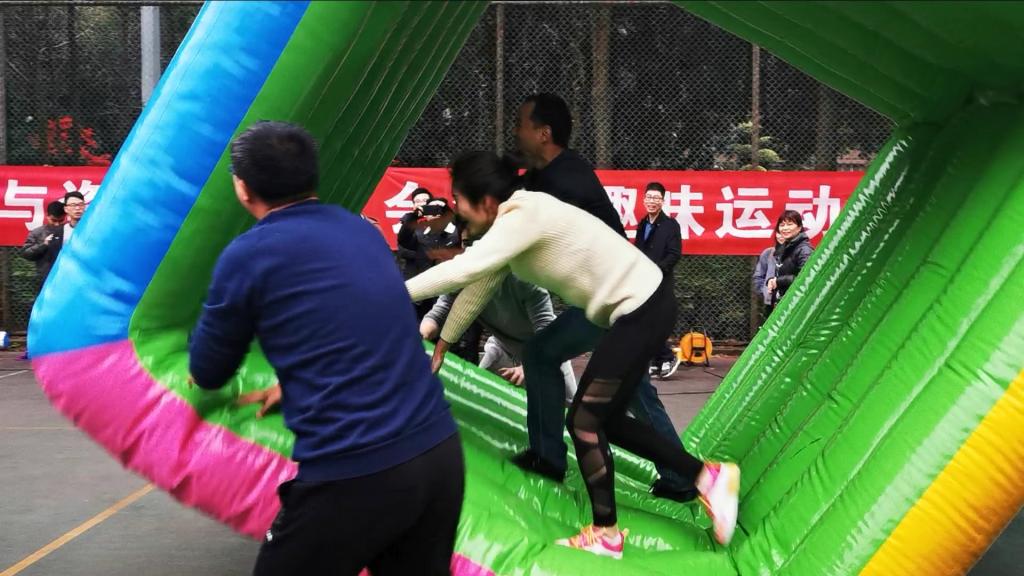 比赛开始前进行了简短的开幕式,学院分党委书记曾林同志在发言中希望通过举办丰富多彩的文体活动,增强学院凝聚力。下午四点,运动会正式开始。为了体现团队合作精神,运动会采用分组对抗的形式,分别组成环境材料队、化学化工队、食品制药队、实验办公队和废油中心队角逐各个项目。本次趣味运动会设置不倒森林、深度协同、海绵云梯、时代巨轮等兼具趣味性、观赏性和竞争性的团体项目。参赛队员个个情绪高涨,运动会在欢乐的气氛中进行。