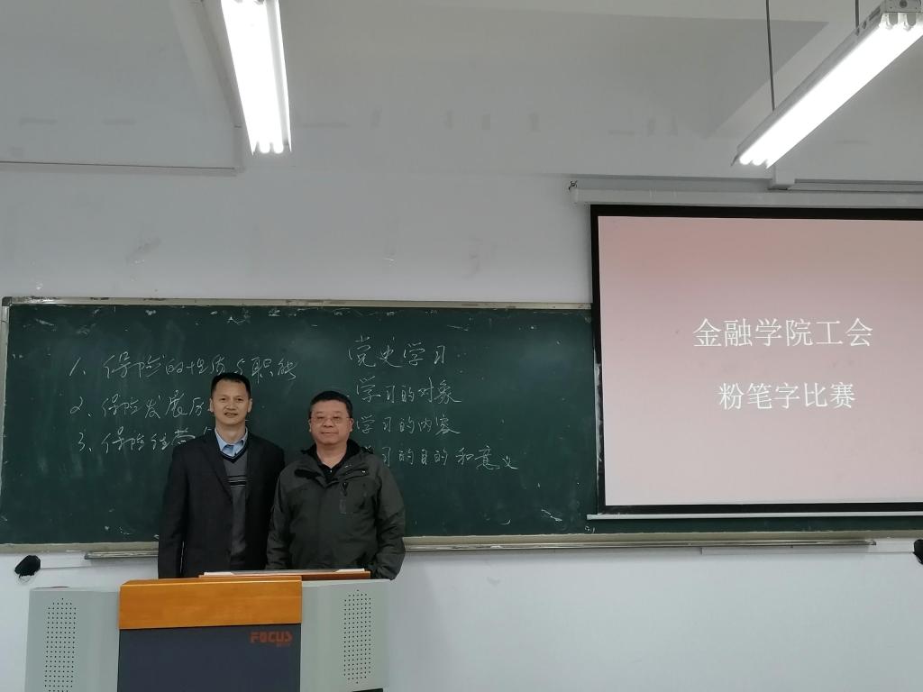 比赛开始,老师们各自站在黑板前,首先开始思考写什么,其实,粉笔字比赛写什么是次要的,关键是怎么布局,写的字是否漂亮。片刻后,老师们的作品陆续出来了。有的老师书写工整,字体漂亮;有的老师龙飞凤舞,潇洒飘逸;有的老师书写所任课程某节内容的提纲,有的老师书写党史学习的主要内容提要,有的老师写下公式推导或演算。有个别老师本身还有课程任务,为了参加本次工会活动,直接将课堂上的黑板书写内容拍照发给学院工会参赛。比赛结束后,院工会进行了评选及表彰。