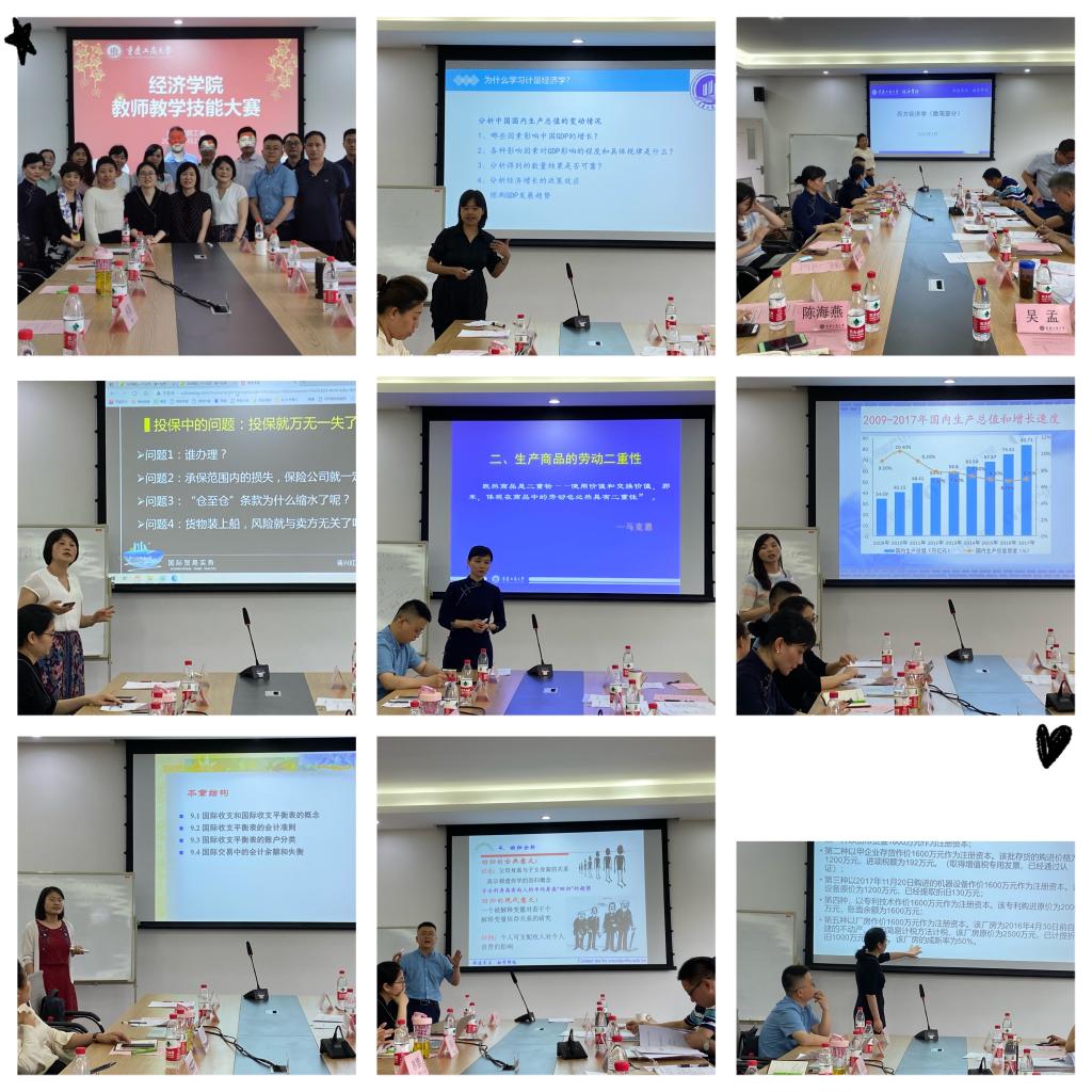 本次大赛是在学院分党委的领导和安排部署下,在应用经济学系、政治经济系、国际贸易系、贸易经济系、财税系的大力支持下举行的,学院5个系共有27名青年教师报名参赛,比赛分为教学设计方案和讲课两个环节,评委通过审阅教学设计方案(分数占总分数30%)和现场听课(占70%)最后得出比赛成绩。在21日的现场讲课环节比赛中,入围决赛的教师通过20分钟PPT教学讲解,展示了各自的课堂教学组织能力和授课技巧,评委对每一位教师的讲课进行了针对性的点评和改进建议。最后,评选出了一、二等奖共8名,并将8名教师推荐到学校参加即将举行的全校教师教学技能大赛。