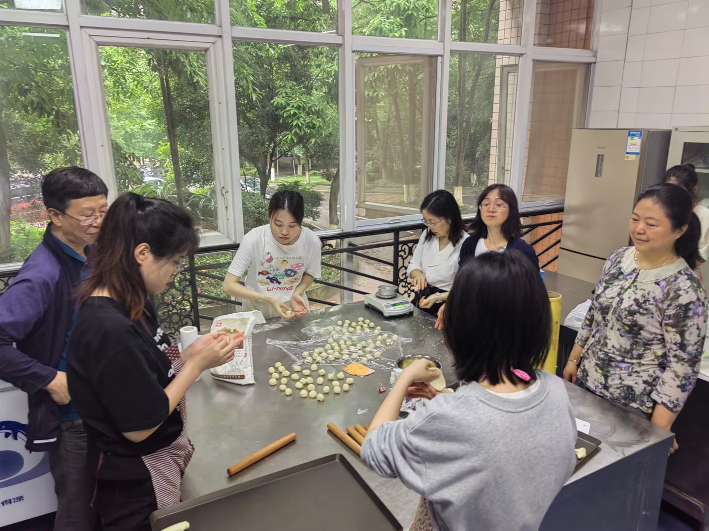 大家首先听取了烘焙实验室陈琳莉老师对烘焙技术及注意事项的讲解,并踊跃提问,随后双方教职工在两个学院领导的带领下积极参加咖啡调制和烘焙活动,有的拉花,有的打蛋,有的调匀,有的和面,有的擀面,有的烘烤等等,一切都让老师们兴趣盎然,到处充满着欢声笑语。一招一式都体现出认真、专业、敬业,谈话声、评论声、欢笑声相互交融,仿佛美妙的乐章,其乐融融,构成一幅美丽的画卷。最后,双方领导还就下一步的深度合作进行了详细的探讨。