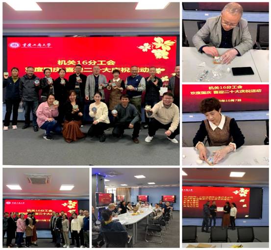 2022年10月7日中午2点,商智楼601教室到处充满了热烈的欢呼声、喝彩声。机关16分工会全体教职工为庆祝国庆佳节在次举办了两项活动:喜迎二十大党建知识竞答活动以及制作杯(碗)垫手工活动。