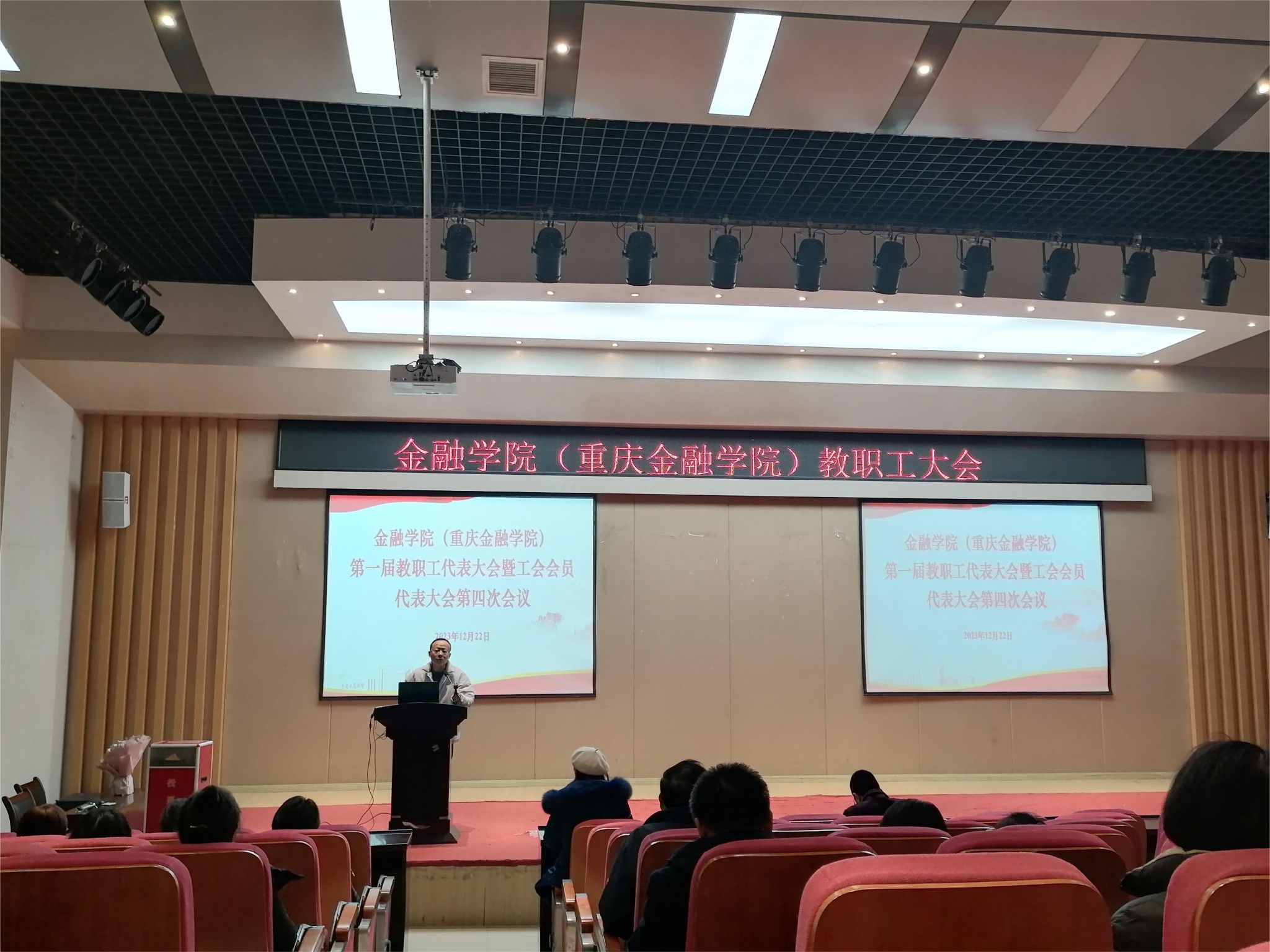 12月22日,金融学院在田家炳209召开第一届教职工代表大会和工会会员代表大会第四次会议。