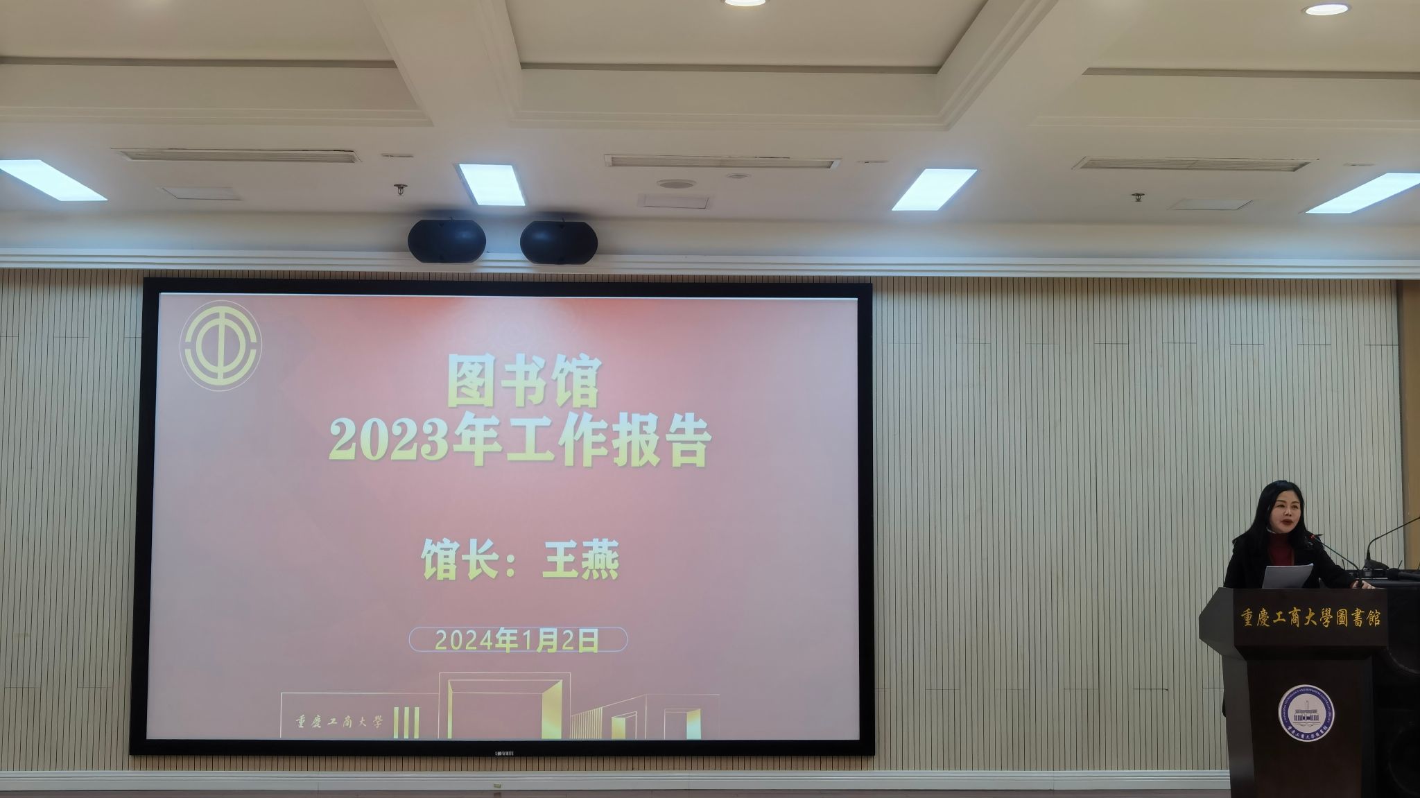 馆长王燕作了2023年度图书馆工作报告。报告从日常管理工作、文献资源建设、翠湖文化建设、读者服务等方面总结了2023年开展的工作和亮点,分析了存在的问题和不足,并提出了改进的措施,对2024年的重点工作,做了相关的布置和安排。