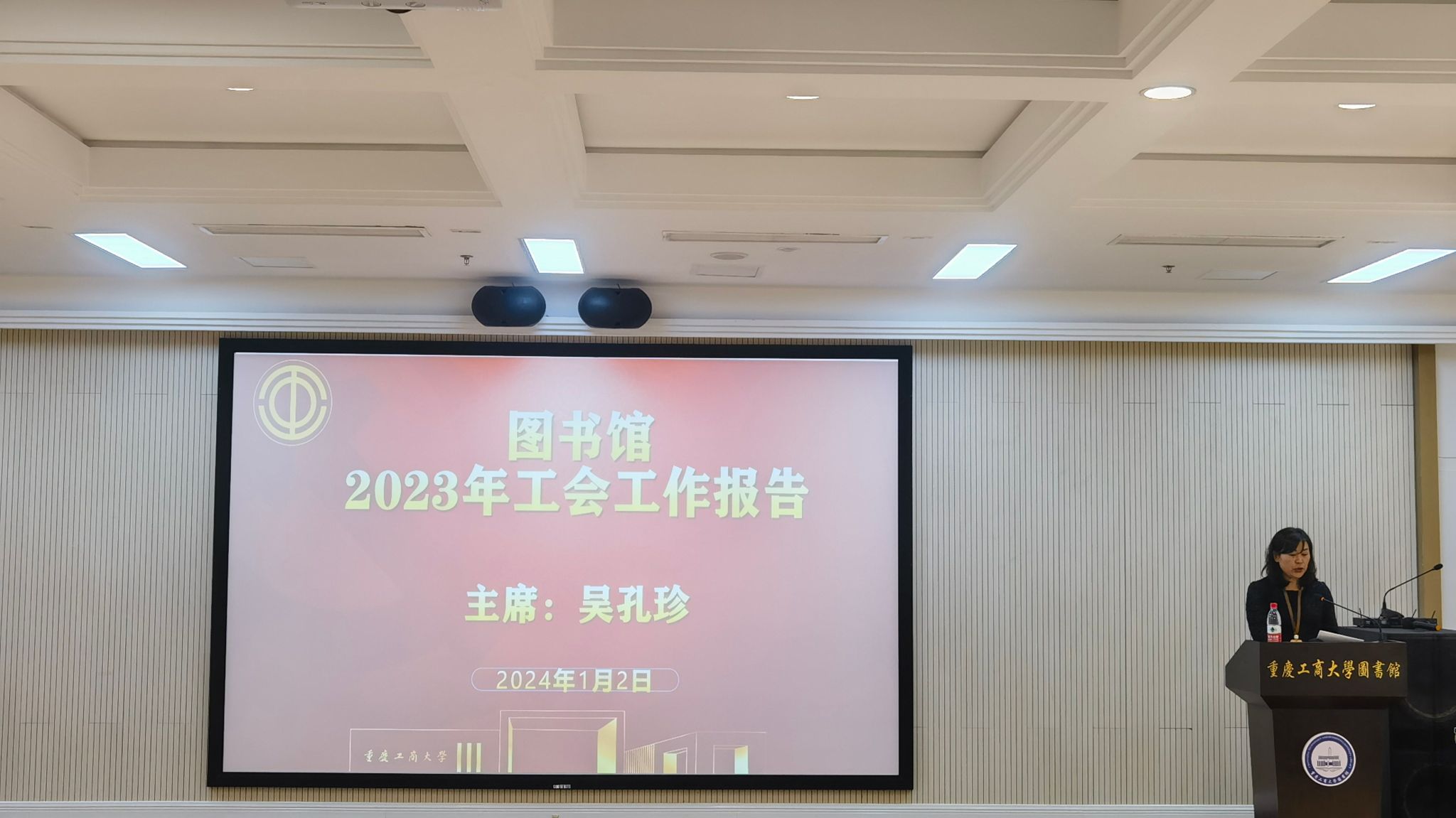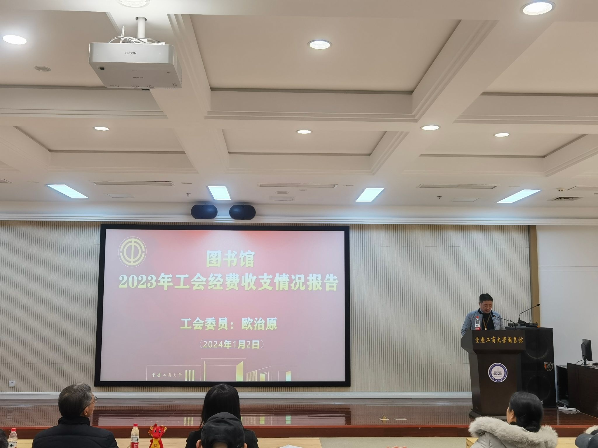图书馆工会主席吴孔珍作了2023年度工会工作报告,工会委员欧治原作了2023年度工会经费收支情况报告。