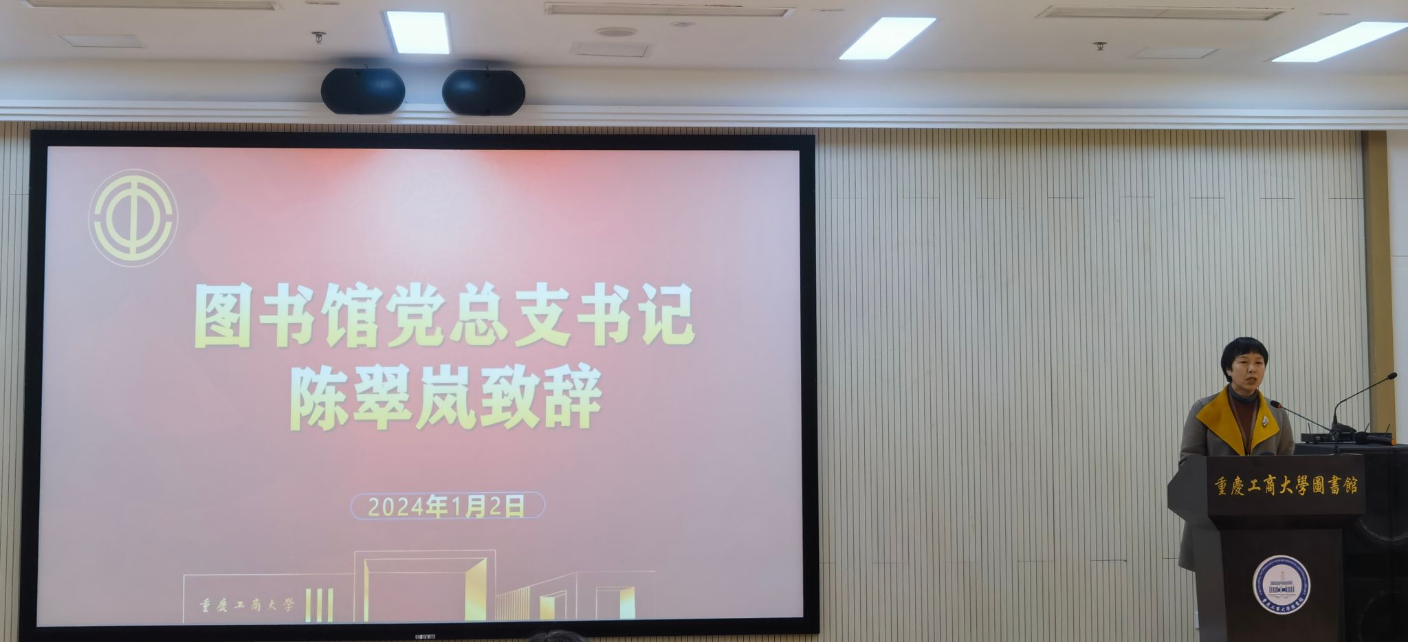 总支书记陈翠岚致开幕词,她代表图书馆党总支对一直以来关心图书馆发展的各位领导、以及为图书馆作出积极贡献的各位代表表示衷心感谢。要求贯彻落实会议精神,提高政治站位,加强制度建设,号召全体教职工继续为图书馆的未来发展贡献自己的力量,并预祝大会圆满成功。