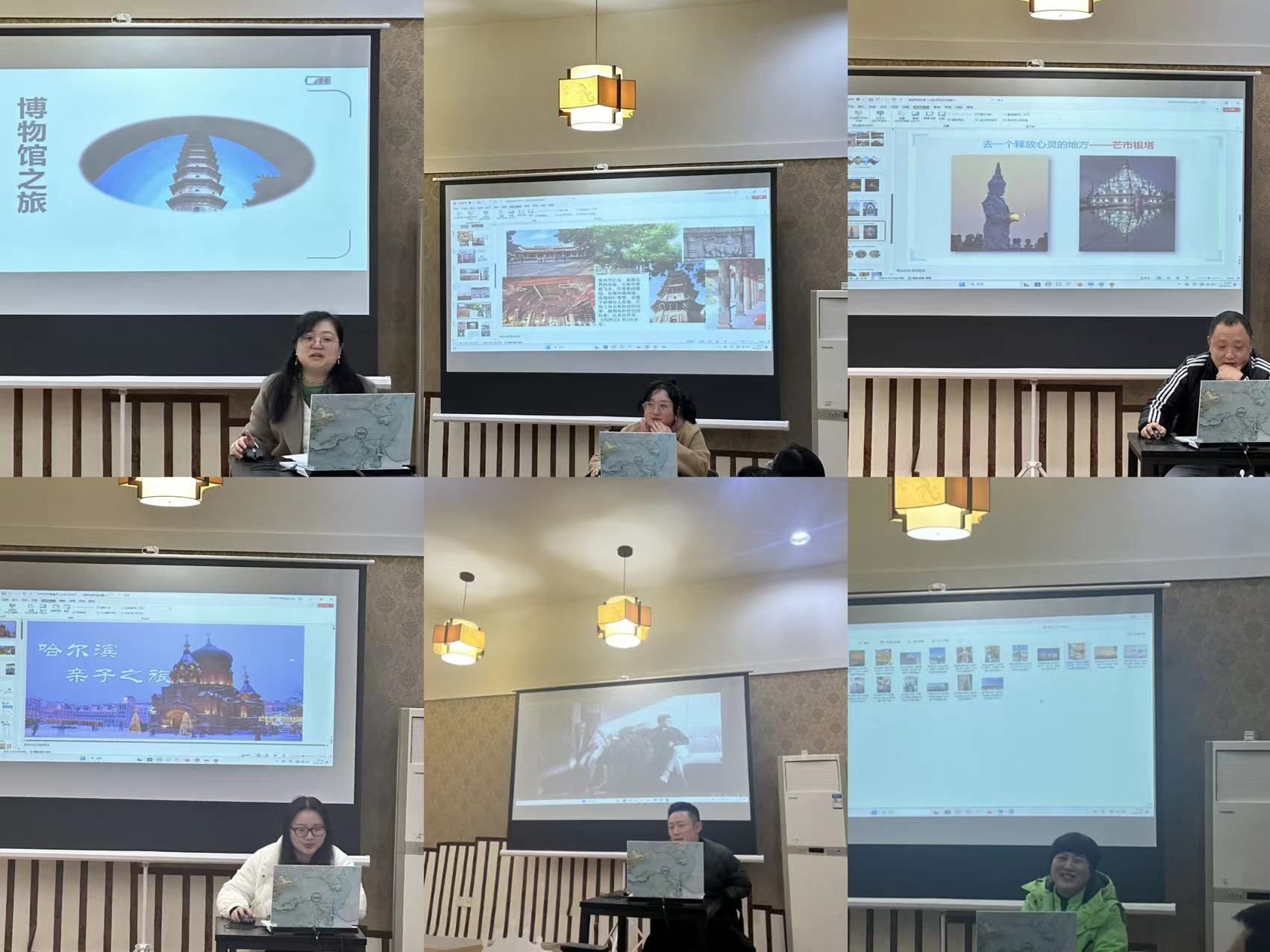 分享会上,张楠、傅晓燕、蒋京川、张杰,梅艺、杨春芳6位老师分别作了主题发言,他们图文并茂的向大家分享自己假期的旅游经历,从山西博物馆的传奇历史,到厦门鼓浪屿的风华故事,从漳州、龙岩的“土楼传奇”,到冰雪王国哈尔滨,无不令人称奇,老师们把走过艺术之城厦门,山海花城漳州,烟火古城泉州,众神之国尼泊尔,热带风情滇西的每一步脚印都娓娓道来,现场欢声笑语,其乐融融。