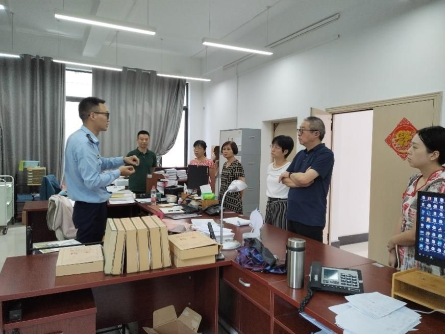 唐警官逐一走访了办公室、档案库房、人事库房等区域,对消防器材是否完好,消防逃生通道是否畅通,灭火器材、设备是否配备完善,各种电器件及线路是否完好、有无老化等情况进行了详细的排查,对安全风险高发点进行了说明。