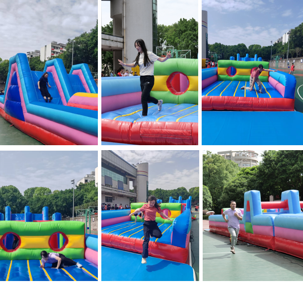 本次趣味运动会设置了“龙腾虎跃”和趣味投篮两个比赛项目。“龙腾虎跃”项目使用的充气赛道宛如一条“巨龙”横亘在赛场上。会员们个个摩拳擦掌、跃跃欲试,他们在赛道上完成陡坡攀爬速降、穿越高低障碍,最后冲向终点,按完赛时间进行排名。