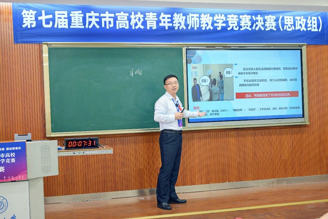 7月5日,由重庆市总工会、重庆市教育委员会主办,重庆市教科文卫体工会委员会、重庆大学承办的第七届重庆市高校青年教师教学竞赛落下帷幕。我校选派的四名青年教师分别参加了文科、理科、工科、思想政治课专项四个组别的比赛,马克思主义学院的董骏老师从来自于62所高校的59名思政组选手中凭借不凡实力脱颖而出,荣获思想政治课专项组特等奖,成功获得代表重庆市高校参加将于8月底在北京举行的第八届全国高校青年教师教学竞赛的参赛资格。