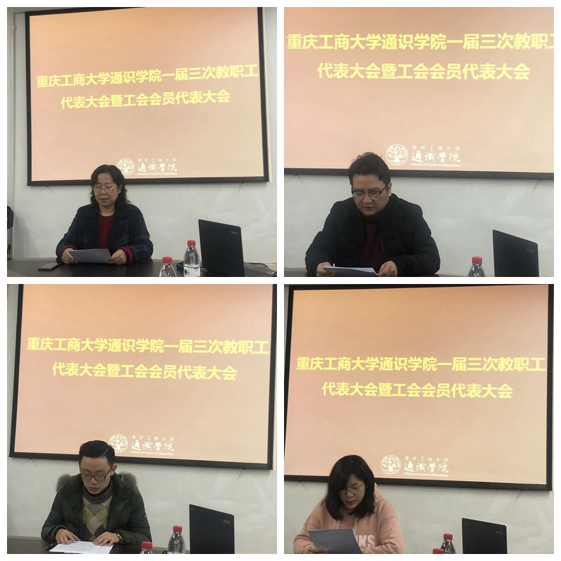 2020年1月9日上午10:00,通识学院在兰花湖崇德楼313会议室召开了一届三次教职工大会暨工会会员大会。院长兼党总支书记、教代会主任包晓玲、党总支副书记邹奇、况源及学院工会主席张杰出席大会,学院全体教职工参会。会议由况源副书记主持。