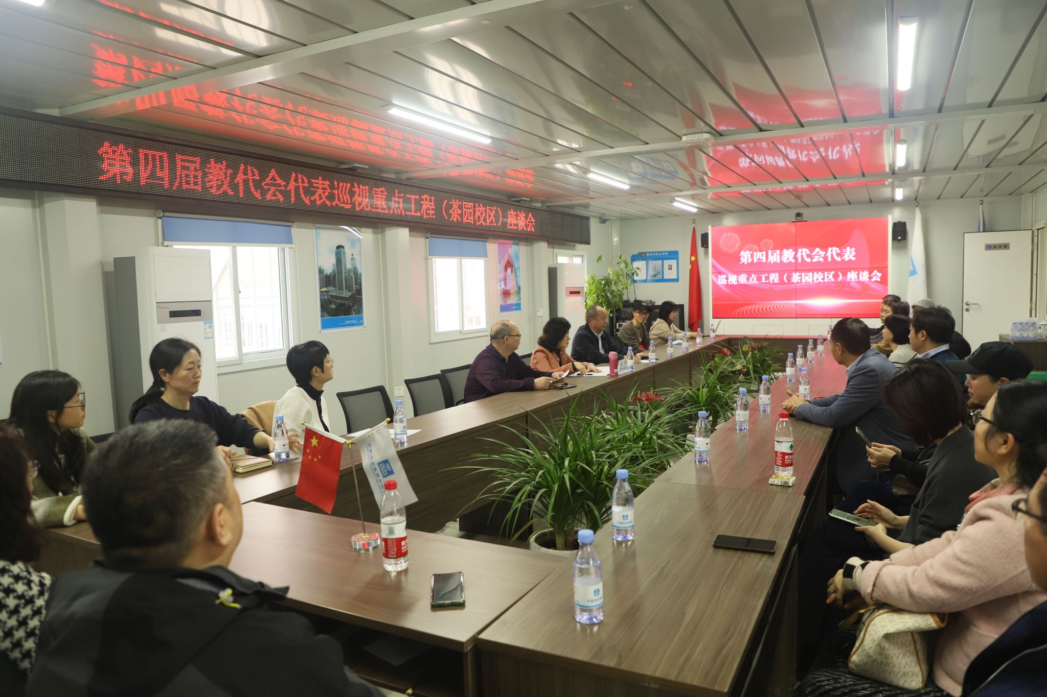 随后,代表们来到会议室召开座谈交流会,会议由工会常务副主席段远鹏主持。会上,李长兴主任向代表们报告了茶园校区建设情况,他详细讲述了茶园校区从无到有的发展历程,介绍了工程建设的规划、进度、布局以及遇到的问题和困难。代表们认真听取了汇报,并对相关问题进行深入交流。