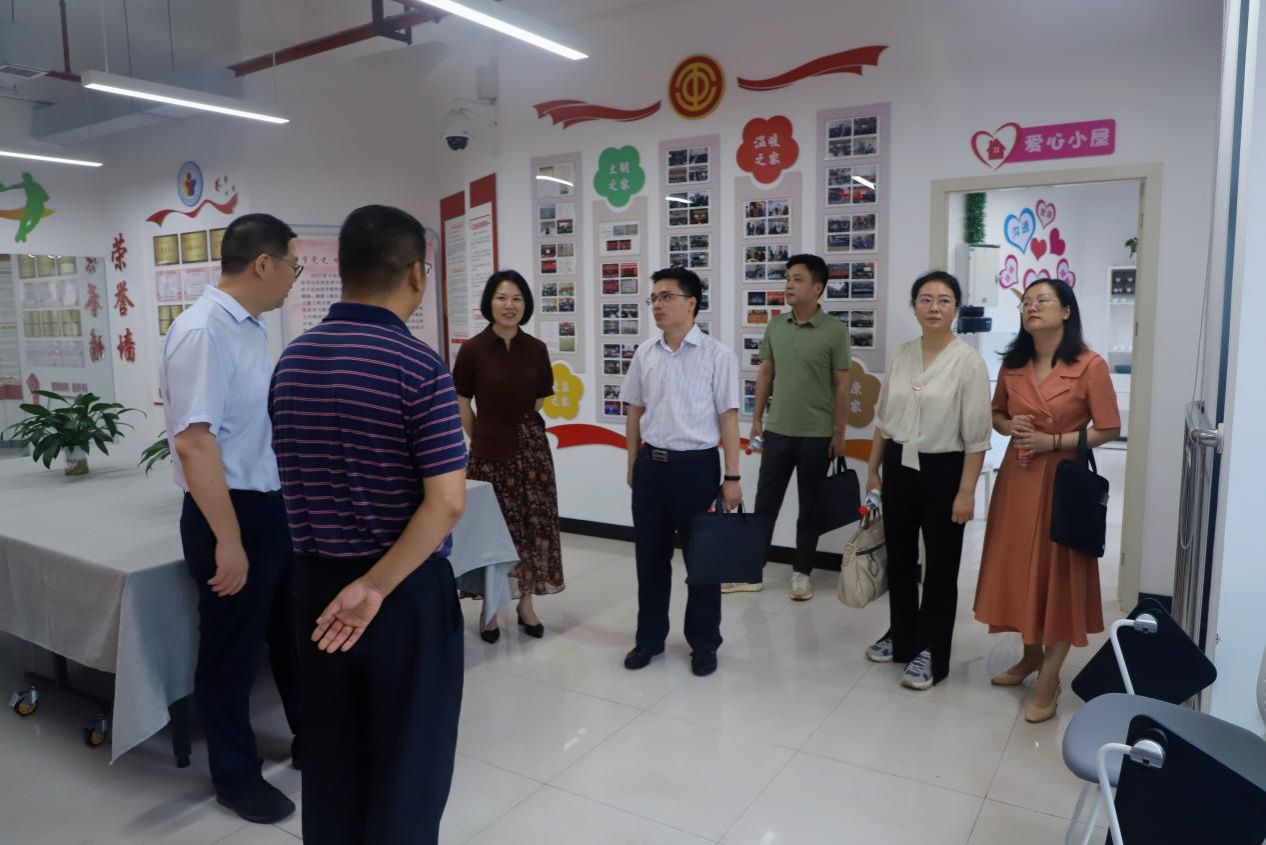 6月20日上午,重庆市总工会基层组织建设部部长陈琳、副部长唐静、市教科文卫体工会副主席袁菁霞等一行深入太阳成tyc7111cc,调研学校职工之家(小家)的建设情况。学校工会常务副主席王静、副主席邱枫,图书馆党委书记陈翠岚、工会主席吴孔珍,外国语学院党委书记彭勇、工会主席黄生等人热情接待并参与了此次调研。