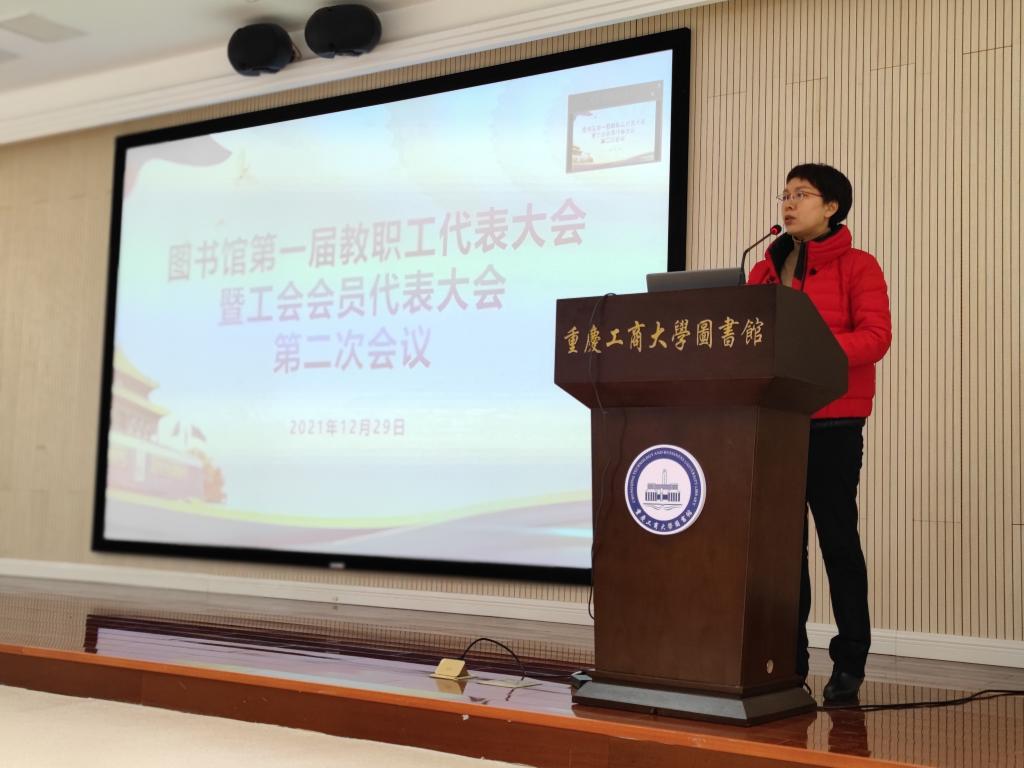 图书馆馆长蔡敏作工作总结报告,回顾和总结了图书馆在今年取得的工作成绩,分析了现有工作存在的问题及举措,并展望了2022年图书馆的工作计划。
