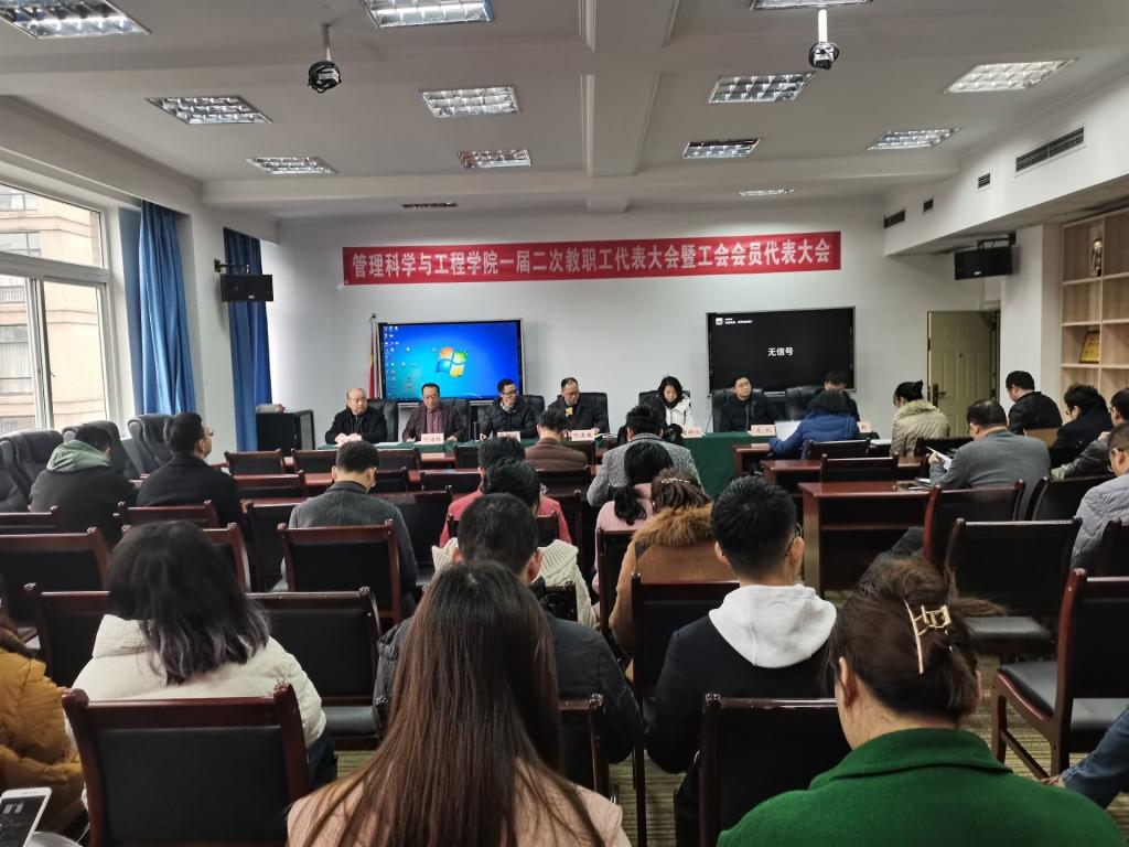 2021年12月24日,太阳成tyc7111cc管理科学与工程学院第一届教职工代表大会暨工会会员代表大会第二次会议在启智楼80707会议室顺利召开。第一届两代会委员在主席台就座,管工学院全体教职工参加了会议。