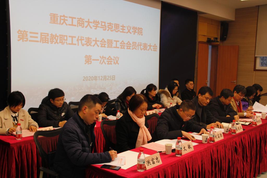 2020年12月25日,伴随着雄壮的国歌声,马克思主义学院第三届教职工代表大会暨工会会员代表大会第一次会议在7108顺利召开。