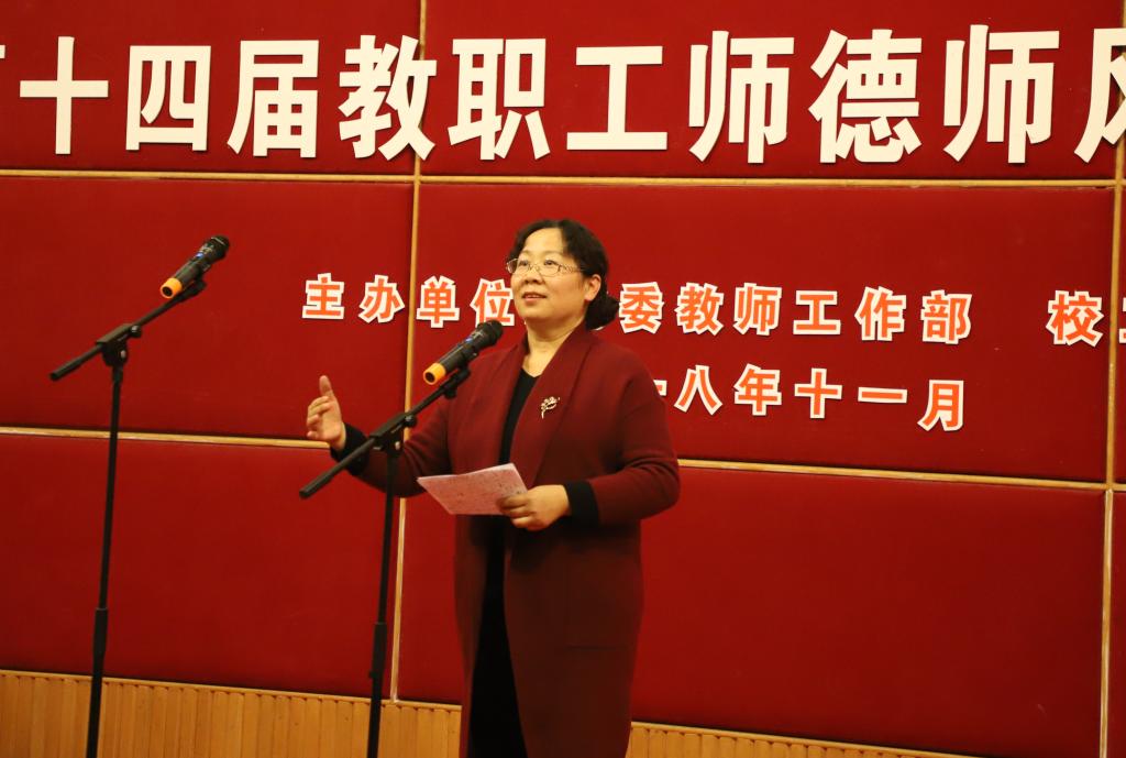 迎着当前全国加强教师思想政治和师德师风建设、全面提升教师队伍整体素质的春风,推进学校师德师风建设,2018年11月9日下午,我校“共同的家园 共同的梦想 共建工商大”系列活动之第十四届师德师风演讲比赛决赛在博智楼7200报告厅如期举行。本次比赛由党委教师工作部和校工会联合主办,校党委书记李春茹,校长孙芳城,校党委副书记、教代会主任、工会主席孟东方,副校长何勇平应邀出席。党委常委、党委组织部、统战部部长郑夕春,党政办公室主任罗勇,党委网络工作部部长杨维东,校工会常务副主席曾林、副主席唐玺,教务处副处长曾晓松等职能部门负责人以及各学院分党委(党总支)书记、工会主席、师生代表等近300人观摩了比赛。