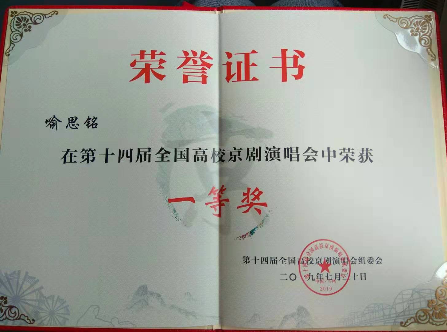 会上,我校京剧爱好者协会会员、商务筹划学院喻思铭同学以一折《荀灌娘》赢得全场热烈的掌声和喝彩声,最终荣获一等奖。该参赛剧目在排练中得到重庆市京剧爱好者协会老师的精心指导,还得到重庆京剧团文武场老师的支持。