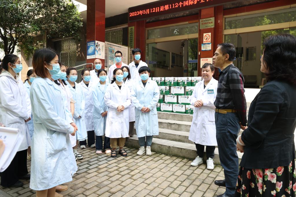 5月12日下午,在第112个国际护士节到来之际,学校党委书记李志雄、党委副书记、工会主席宋豫前往校医院看望、慰问学校医护人员。