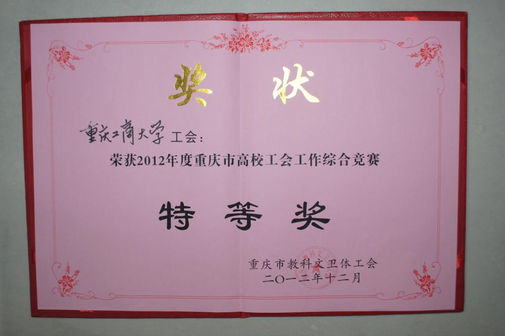 我校荣获重庆市高校工会工作综合竞赛特等奖