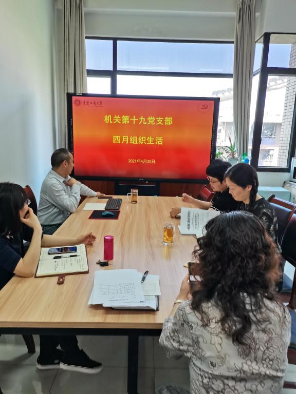 4月30日下午,机关党委第十九支部在厚德楼6009会议室召开了组织生活会。会议由支部书记段远鹏同志主持,支部全体党员参加了会议。