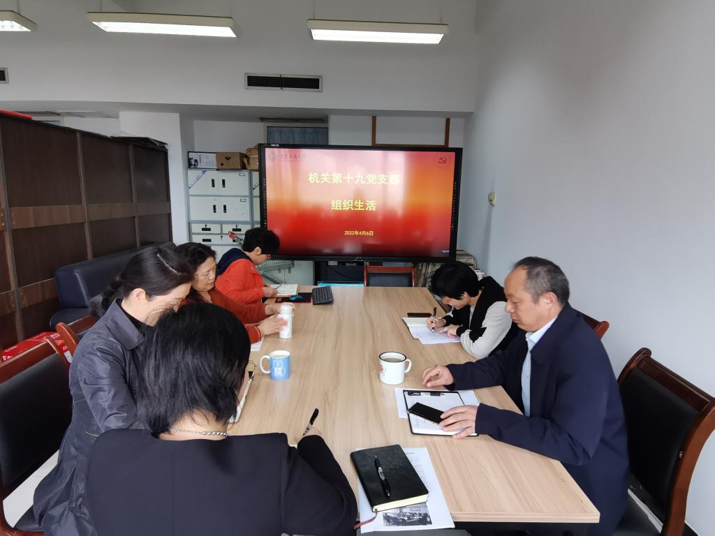 4月6日上午,机关党委第十九党支部在厚德楼6009会议室召开四月组织生活暨政治理论学习会。会议由党支部书记段远鹏同志主持,支部全体党员参加。