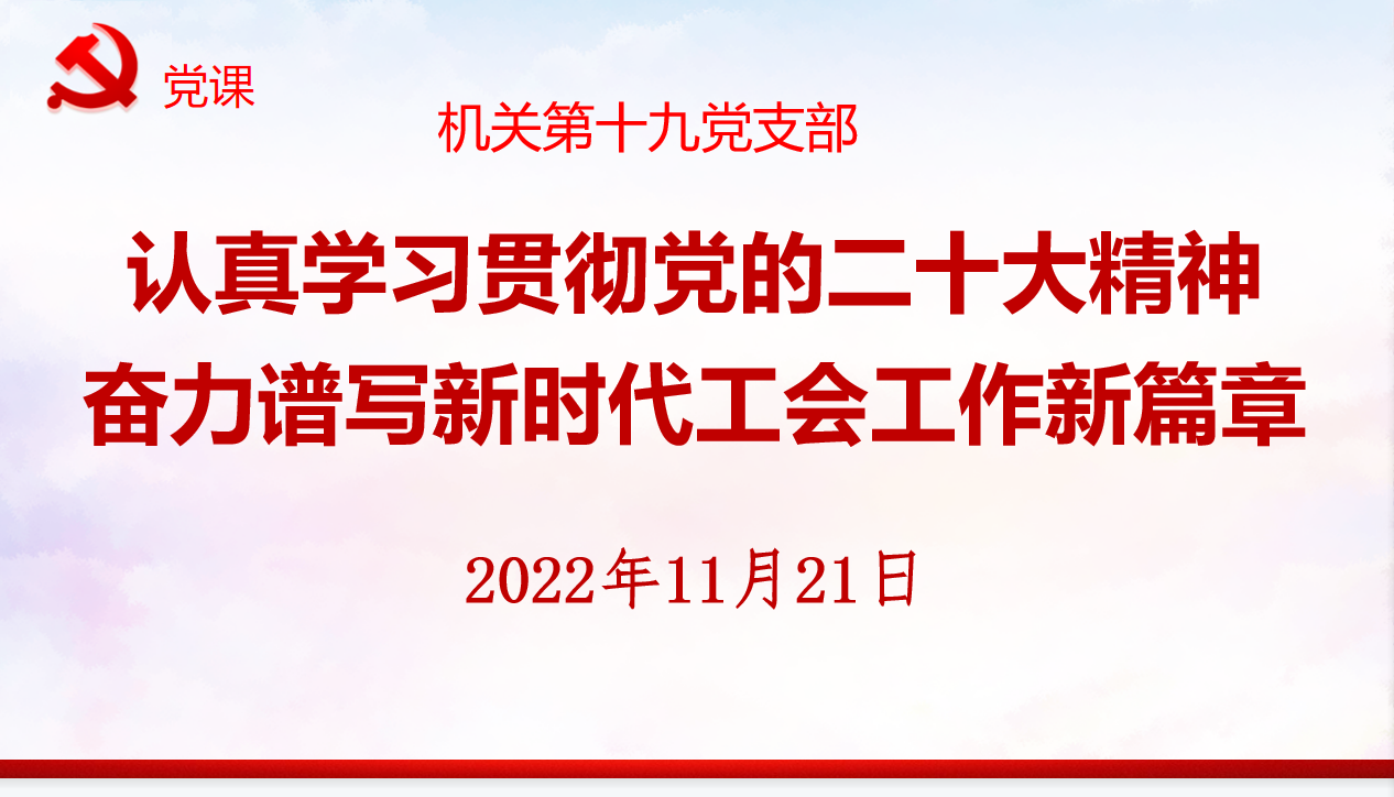 为更加深入地学习宣传贯彻党的二十大精神,11月21日上午,机关第十九党支部召开线上党员大会,党支部书记段远鹏为党员同志讲党课,宣读党的二十大精神。